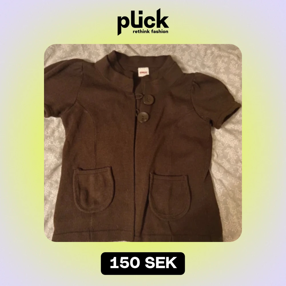 En kortärmad kofta med knäppe i halsen Står m men sitter som s