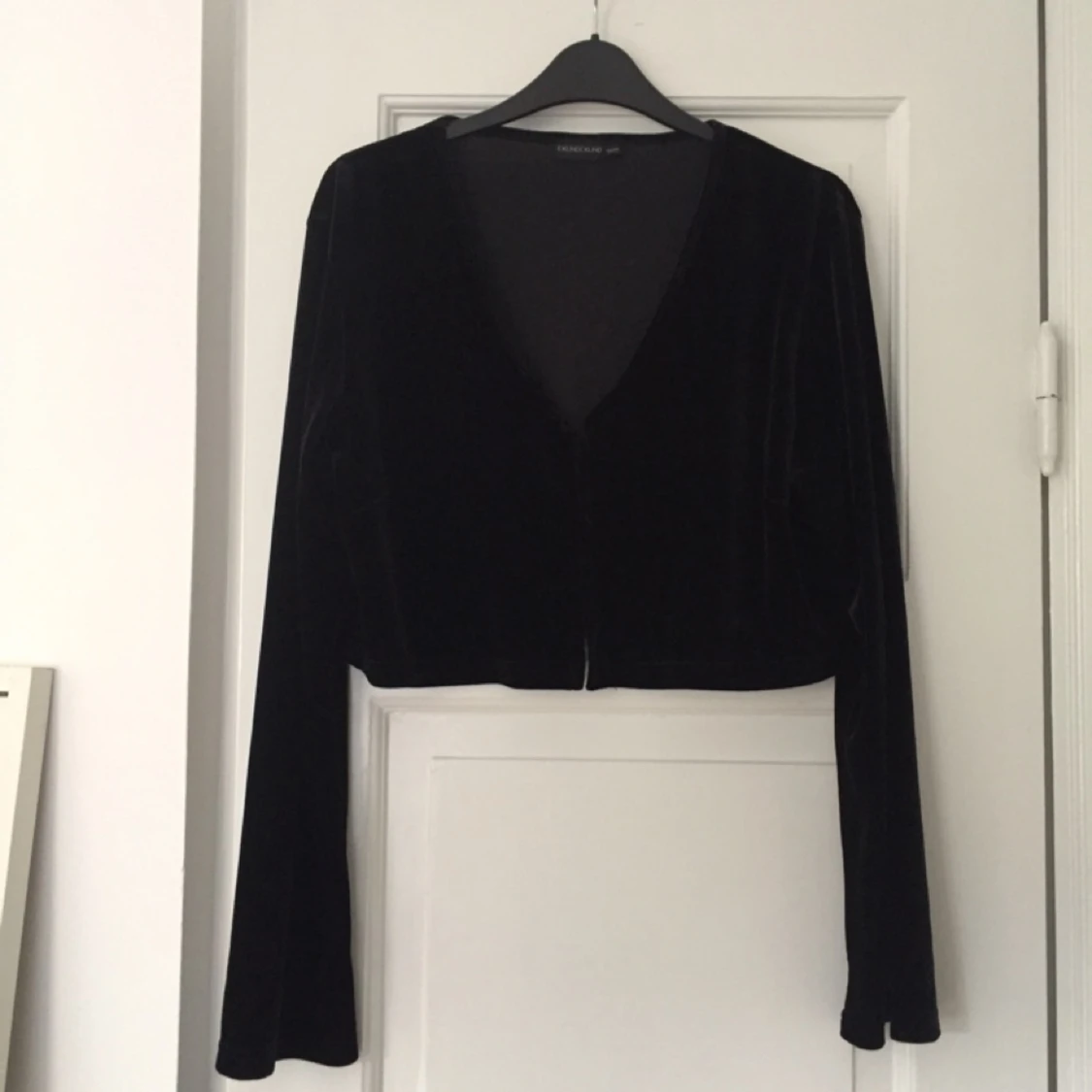 Svart sammetsbolero med vida ärmar. Använd ett fåtal gånger.