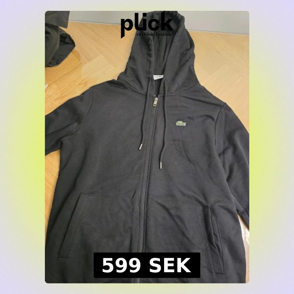 Svart hoodie från Lacoste i storlek M med klassisk krokodillogga på bröstet. Tröjan har huva med snörning, två fickor fram och hel dragkedja. Tillverkad i mjuk bomull, perfekt för chill dagar. Snygg och enkel design som funkar året runt.