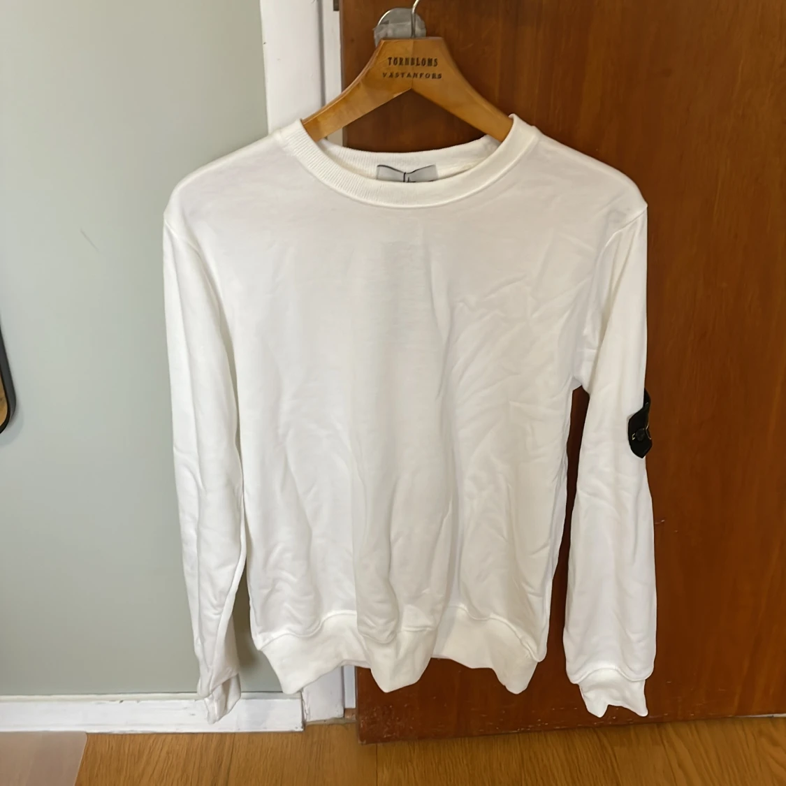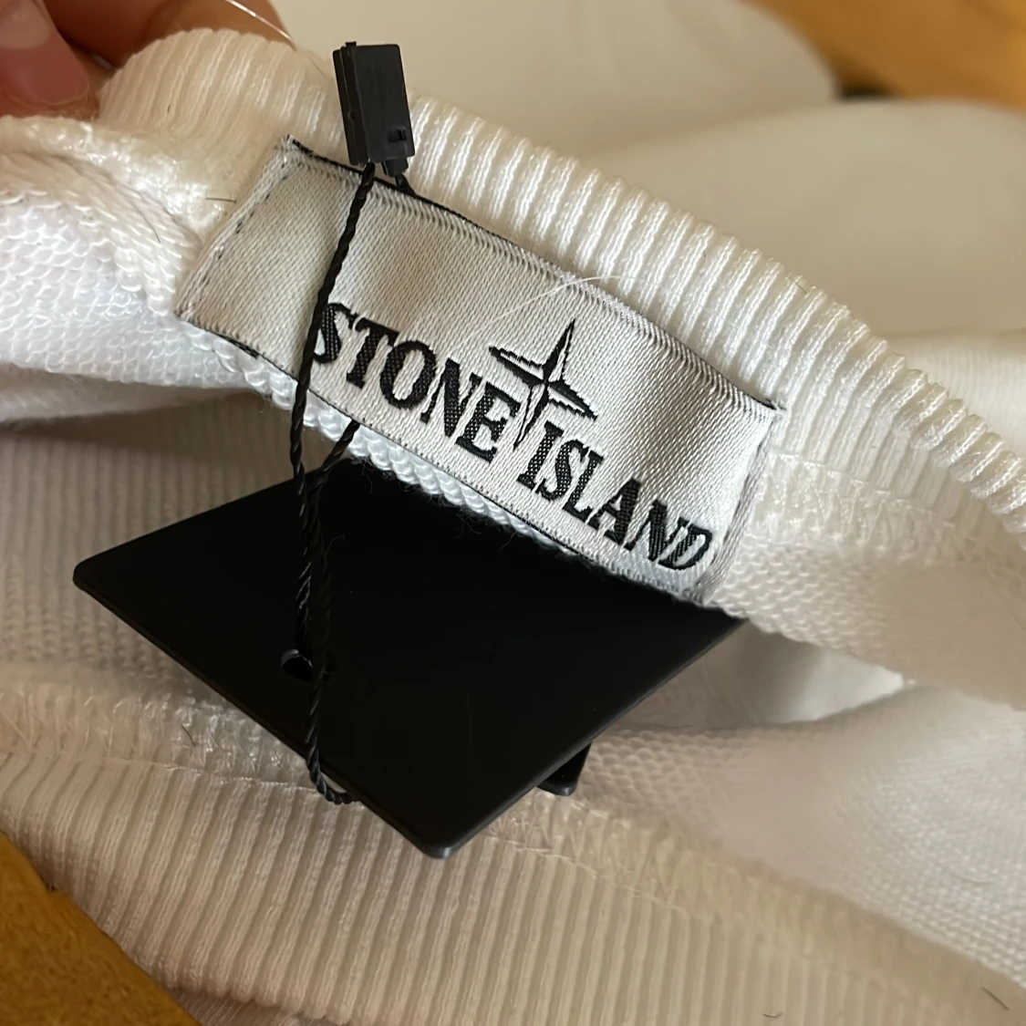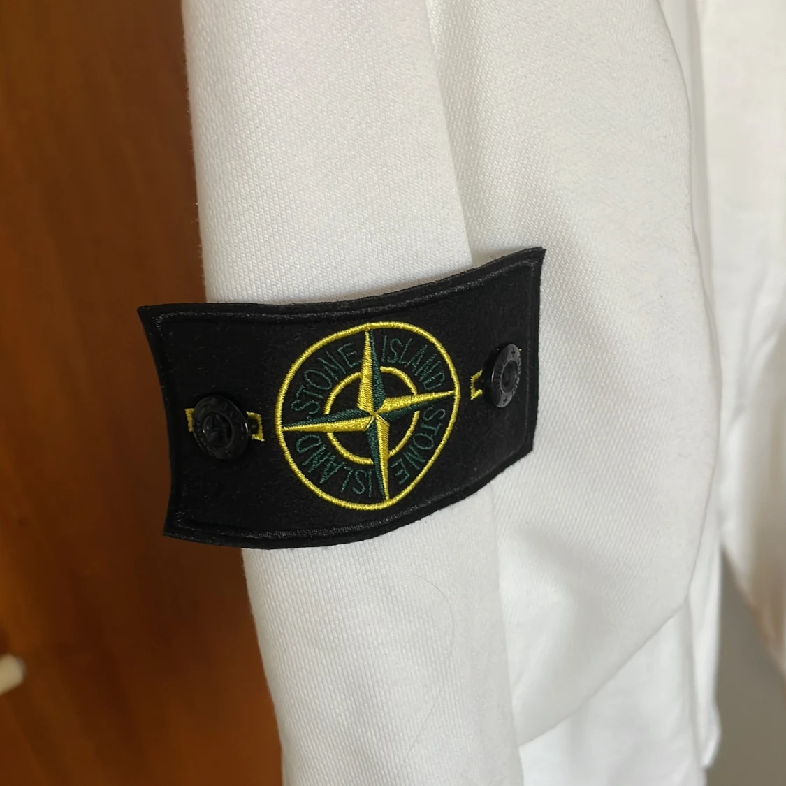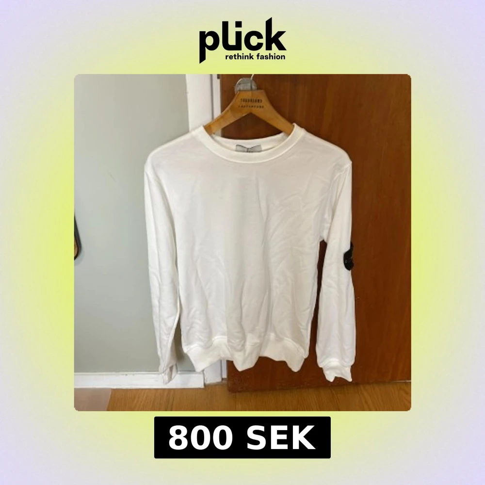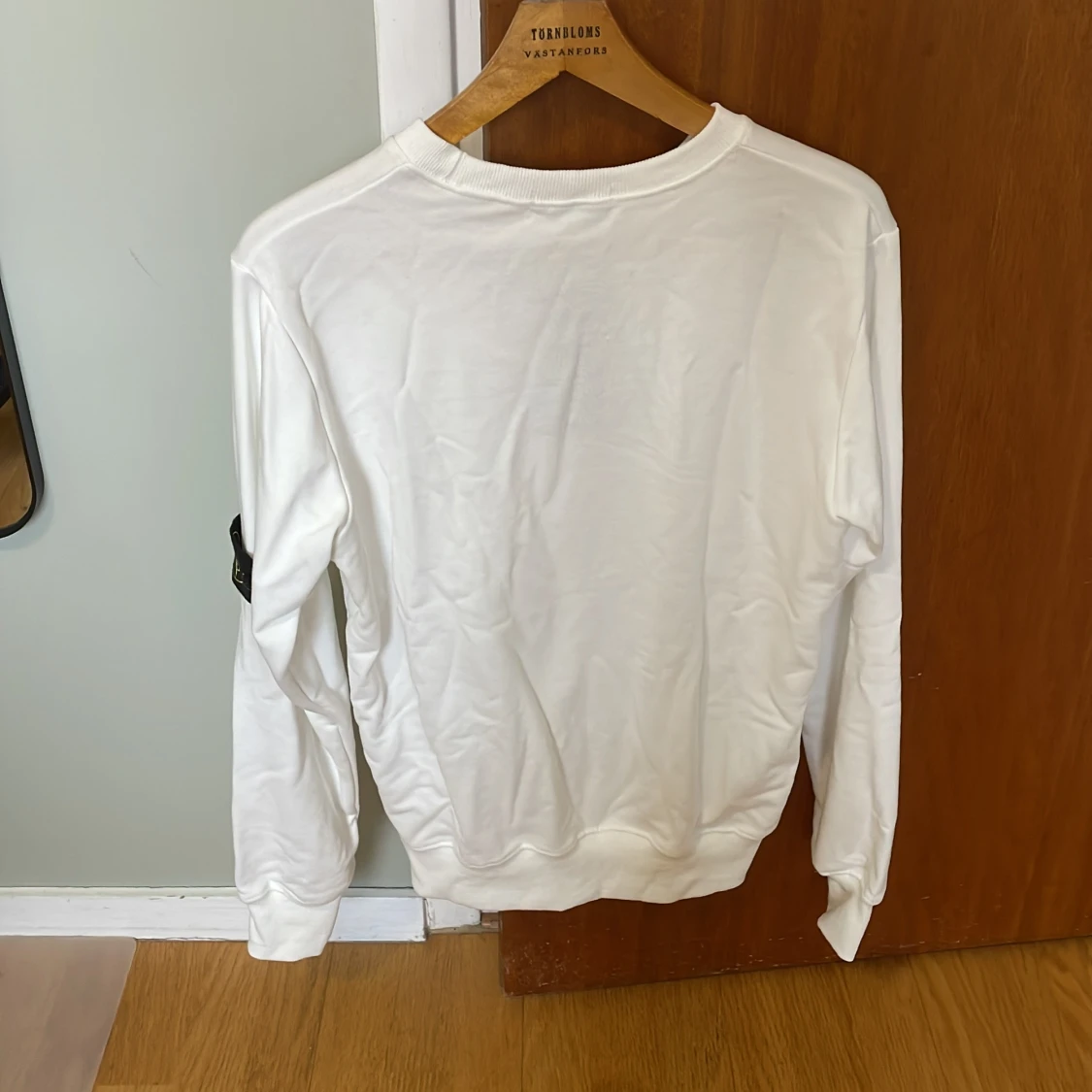 Vit långärmad sweatshirt från Stone Island med klassisk rund hals och ikonisk logotyp-patch på vänster ärm. Tröjan är i mjuk bomull och har ribbade muddar vid ärmslut och nederkant. Perfekt för en clean och stilren look.