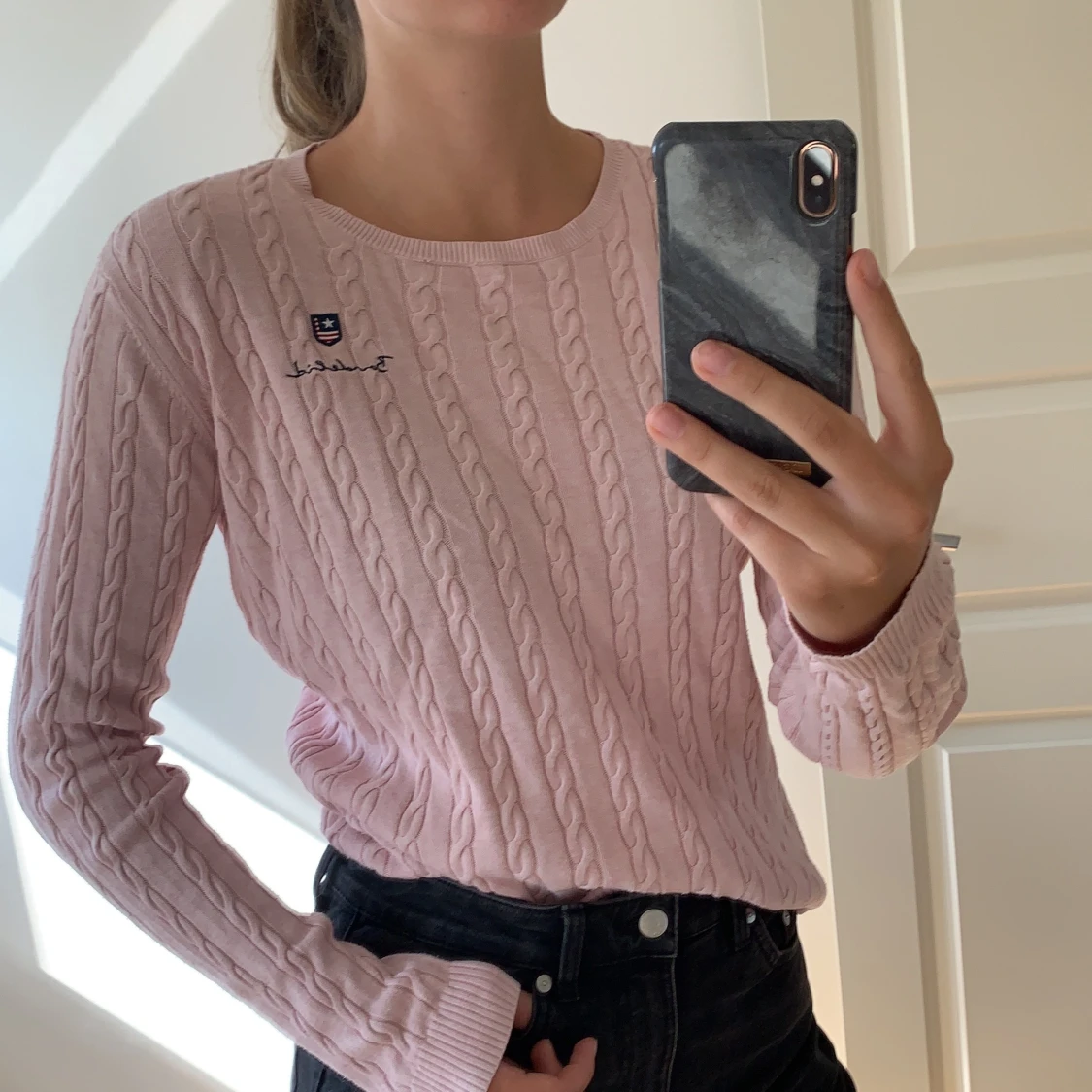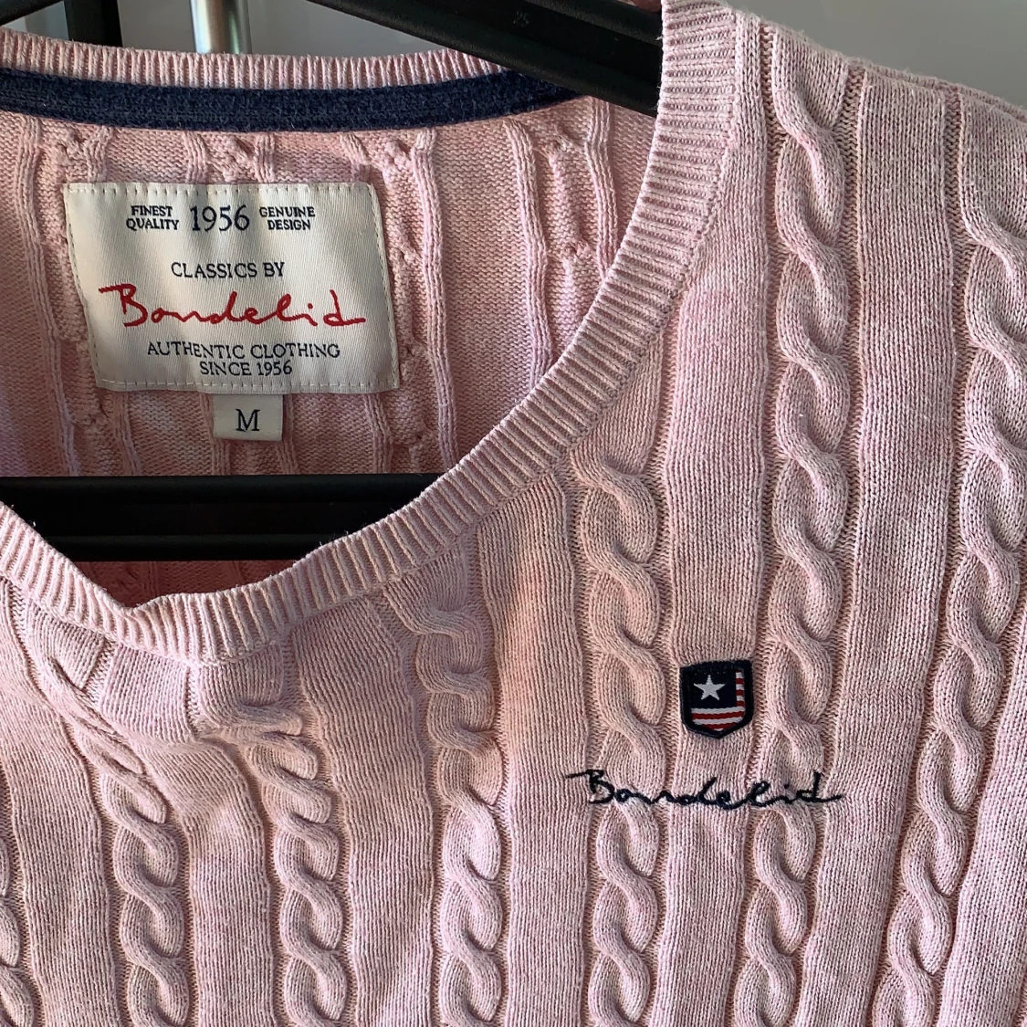 Rosa äkta kabelstickad bondelid! Lite urtvättad, men i bra skick! Storlek M och rätt så lång i armarna! Ordinarie pris 999kr. Köparen står för frakt!💕💕
