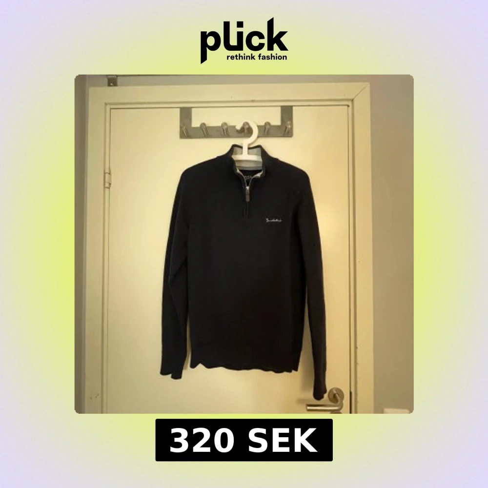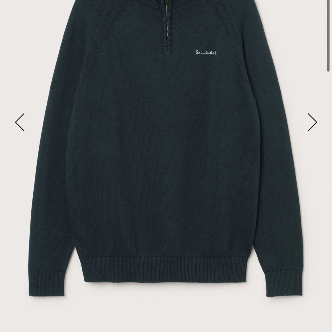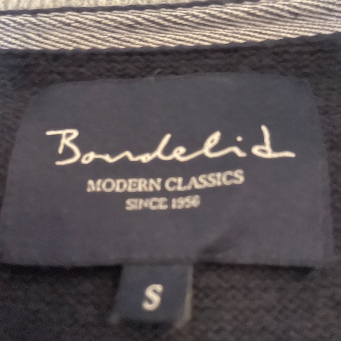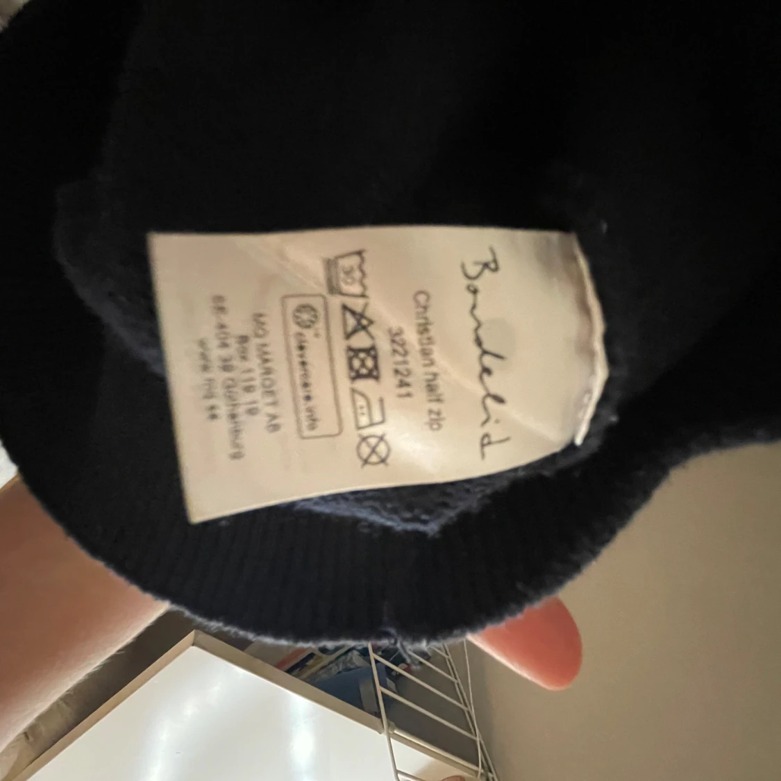 Klassisk half zip-tröja från Bondelid i en djup mörkblå färg. Tjock och mjuk bomullsblandning som håller formen. Dragkedja i halsen med snygg metall-zipper och diskret logga på bröstet. Perfekt till både jeans och chinos för en tidlös. Använd ett fåtal gånger därav 9/10 skick