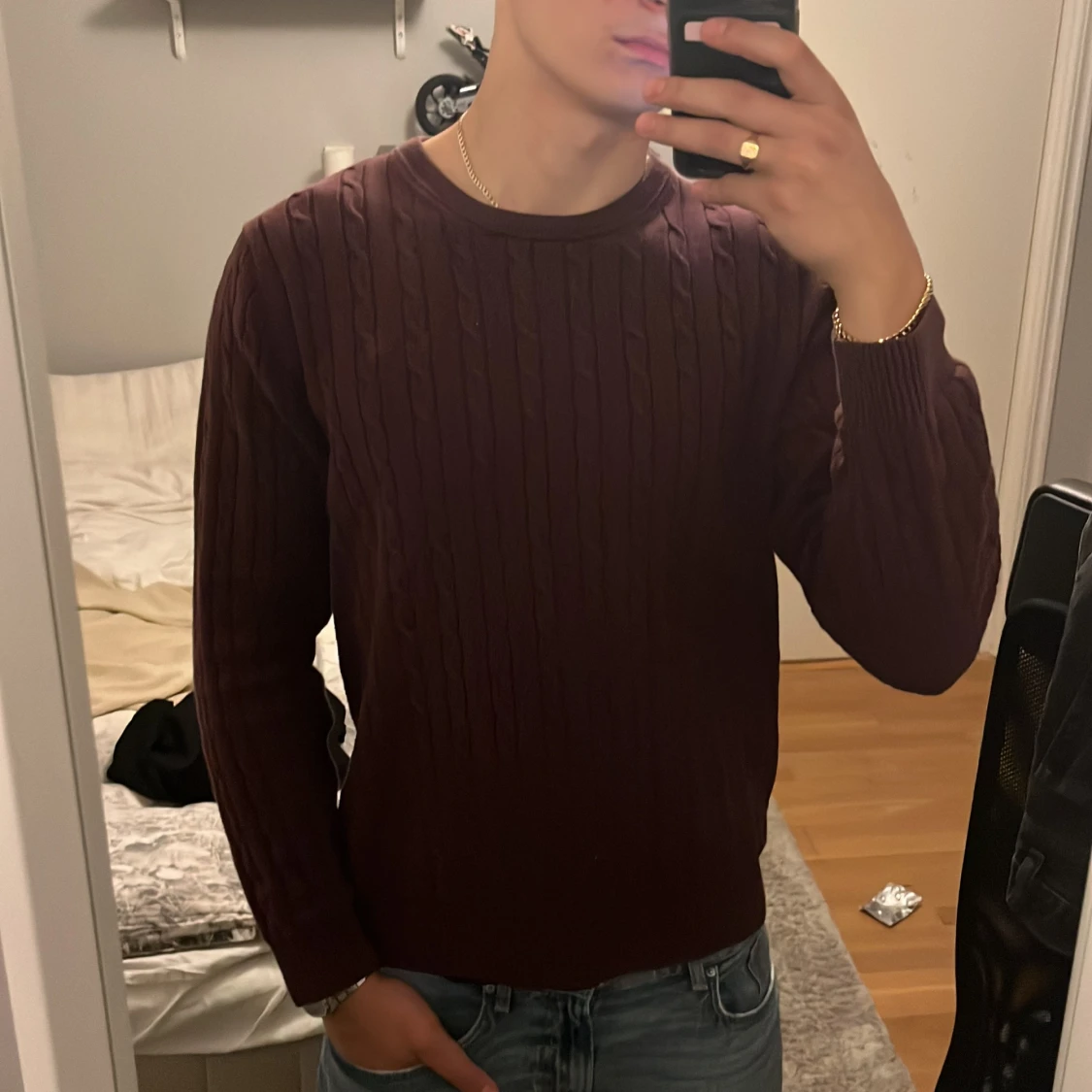 Säljer en vinröd kabelstickad tröja från Bondelid. Köpte den förra året men har i stort sätt aldrig använt den. Priset kan alltid förhandlas. Hör av er om det finns några funderingar.