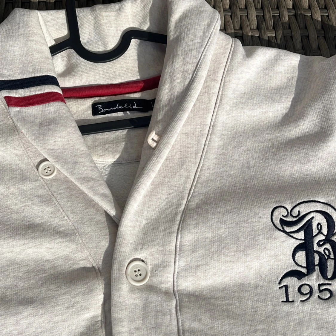 En otroligt snygg cardigan från Bondelid😍Cardiganen är mycket fräsch och unik. Skick 10/10. Färgen är krämvit/ljusgrå med röda och blå detaljer. Size L men passar M också. Perfekt för lite kyligare väder i sommar☀️🌄Sitter otroligt bra. Bara att höra av er om ni är intresserade eller behöver mer bilder, pris kan diskuteras💰