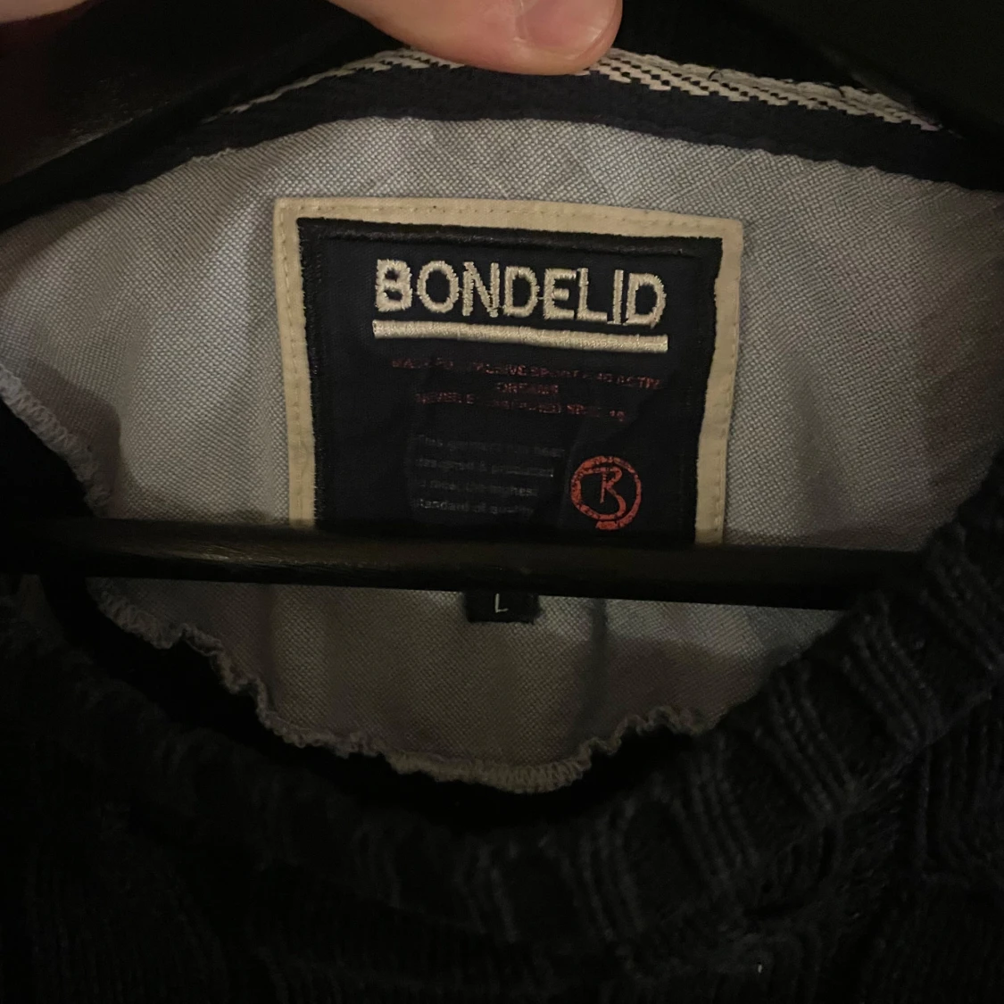 Säljer en stilren mörkblå kabelstickad tröja från Bondelid. Tröjan har en klassisk design med rund hals och långa ärmar, perfekt för kyligare dagar. Passar bra till både jeans och chinos.