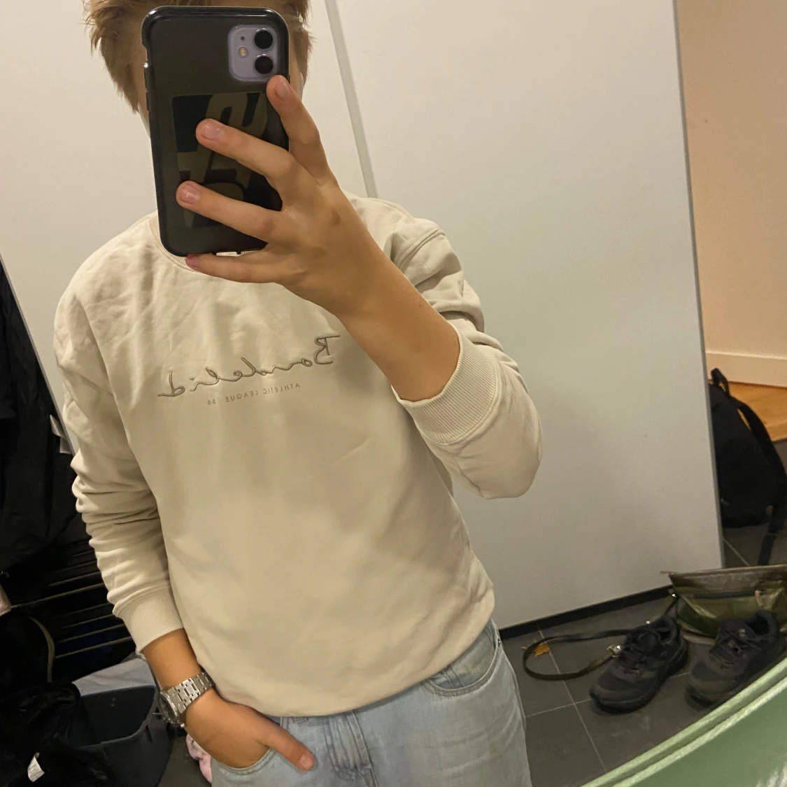 Säljer en stilren beige sweatshirt från Bondelid i storlek S. Tröjan har en klassisk design med rund hals och långa ärmar. Perfekt för en avslappnad look eller för att hålla sig varm under kyligare dagar. Den är i mycket bra skick och redo för en ny ägare! Alltid öppen för prisförslag!