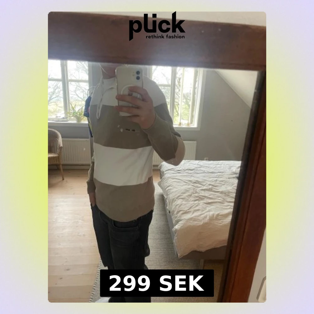 Säljer en snygg pikétröja från Bondelid i storlek S. Tröjan har breda beige och vita ränder, klassisk krage och knappar vid halsen. Materialet är mjuk bomull och passformen är normal. Perfekt för dig som gillar stilrena och chill plagg.