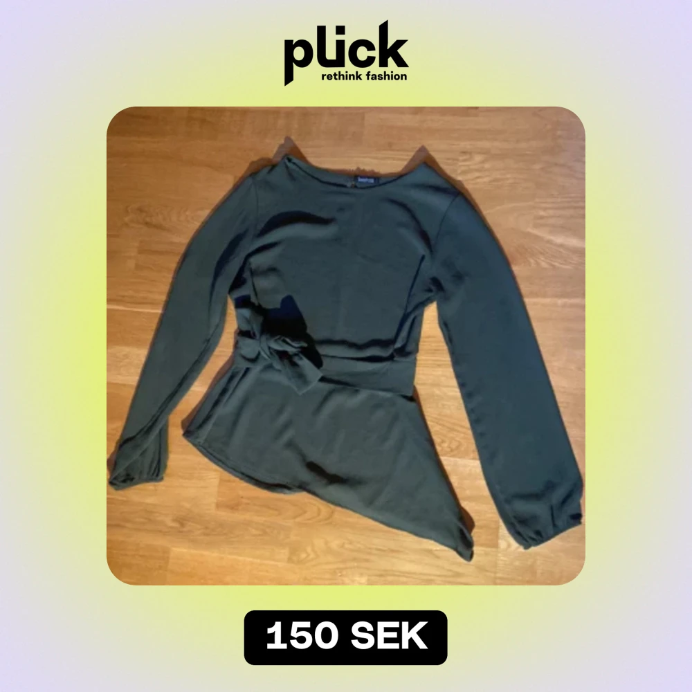 Säljer en snygg mörkgrön långärmad topp från Boohoo. Den har en knytning i midjan som ger en fin passform och en asymmetrisk nederkant som gör den lite extra speciell. Perfekt för höst och vår! 💚