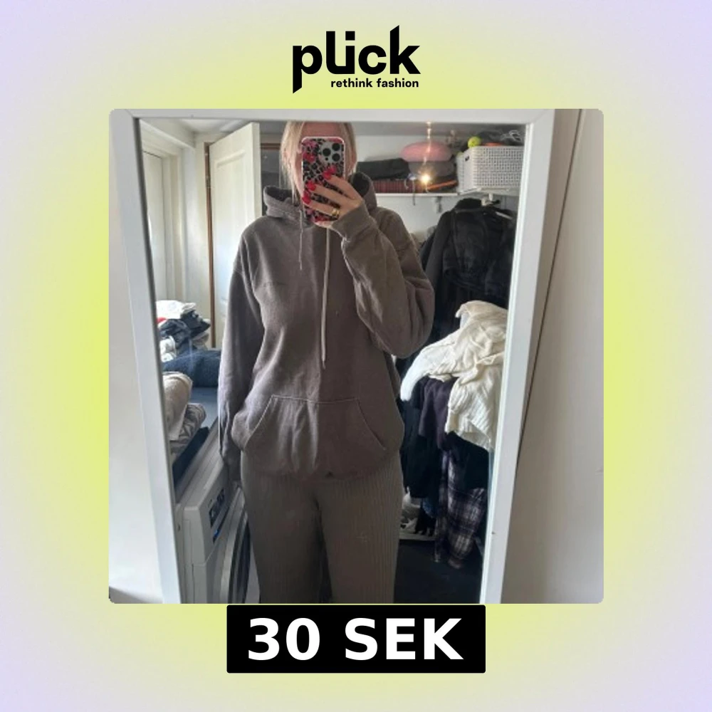 Mysig brun hoodie med huva och dragsko samt stor magficka framtill. Tröjan har långa ärmar och en avslappnad passform, perfekt för en chill vardagslook.