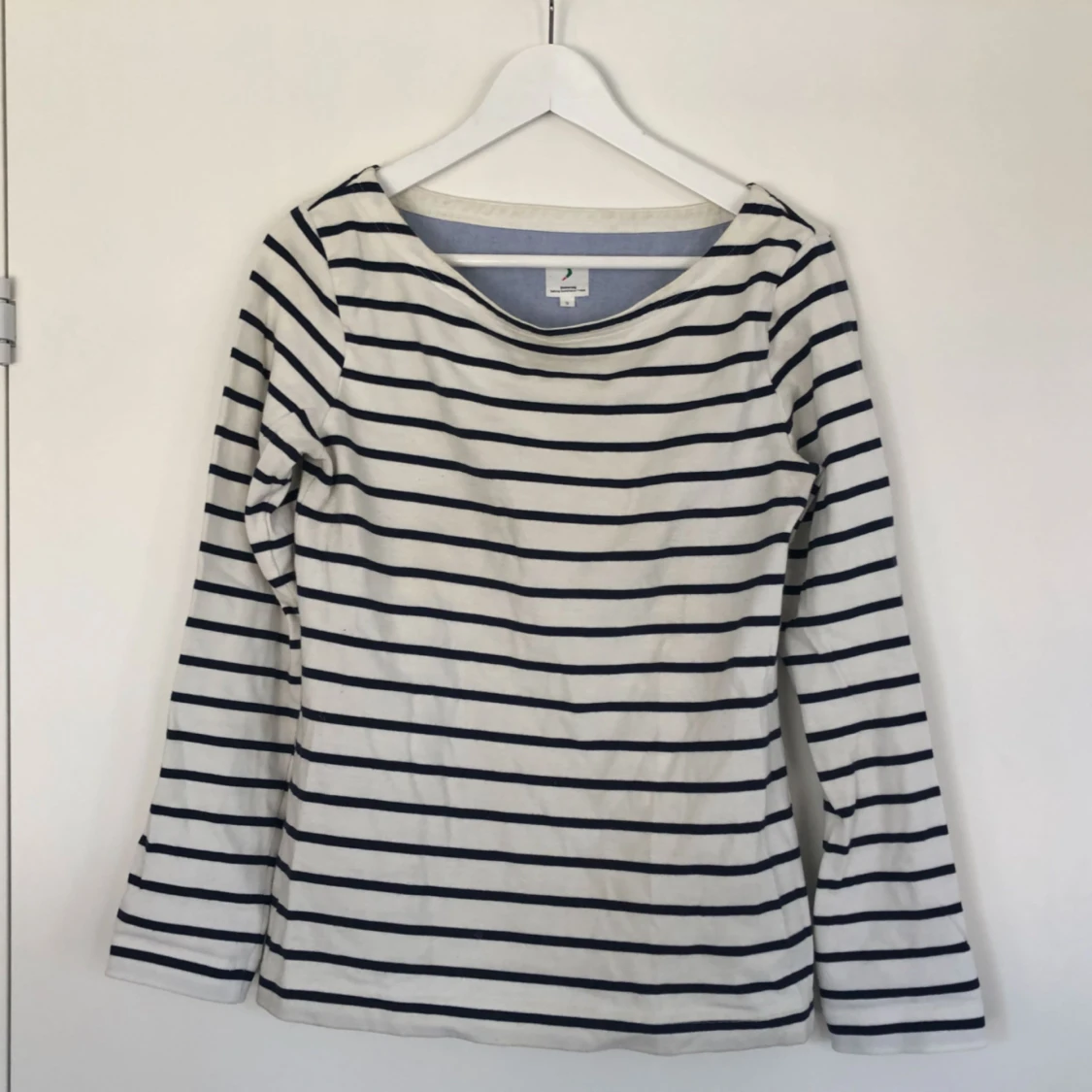 100% bomull från Boomerang. Perfekta randiga basen. Använd ca 1-3 ggr och tvättad en gång. Fint skick.