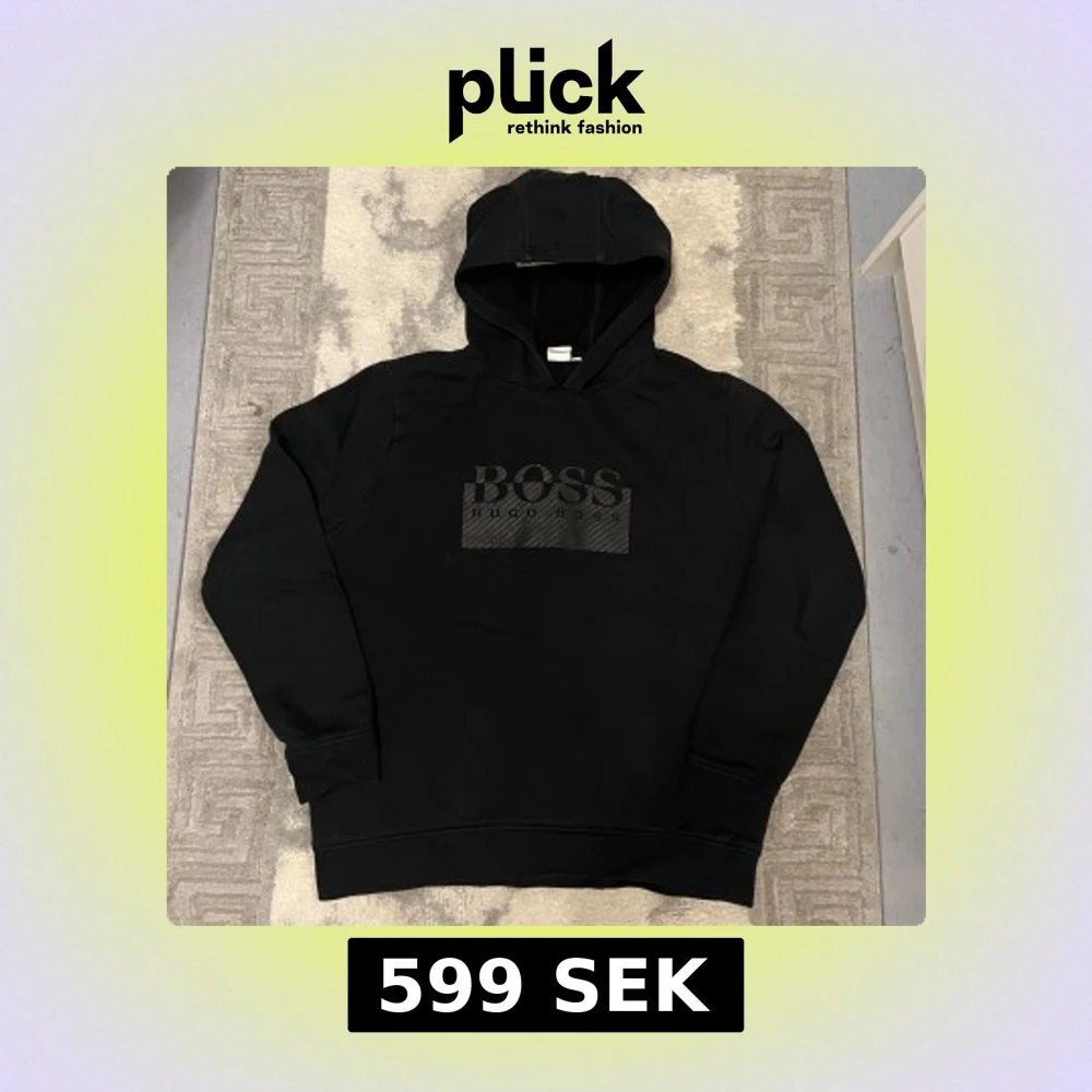 Svart hoodie från Hugo Boss är en gammal rare model med stor logga på bröstet i ton-i-ton. Klassisk huva, långa ärmar och mjukt material som känns skönt mot huden. Perfekt för dig som gillar stilrena och snygga streetwear-plagg.
