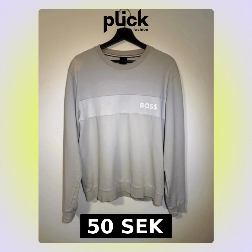 Säljer en tröja från Hugo Boss. Tröjan är vit/grå. Fin i skicket förutom en missfärgning på axeln som inte märks särskilt mycket. Skriv ett pm för prisförslag eller frågor.