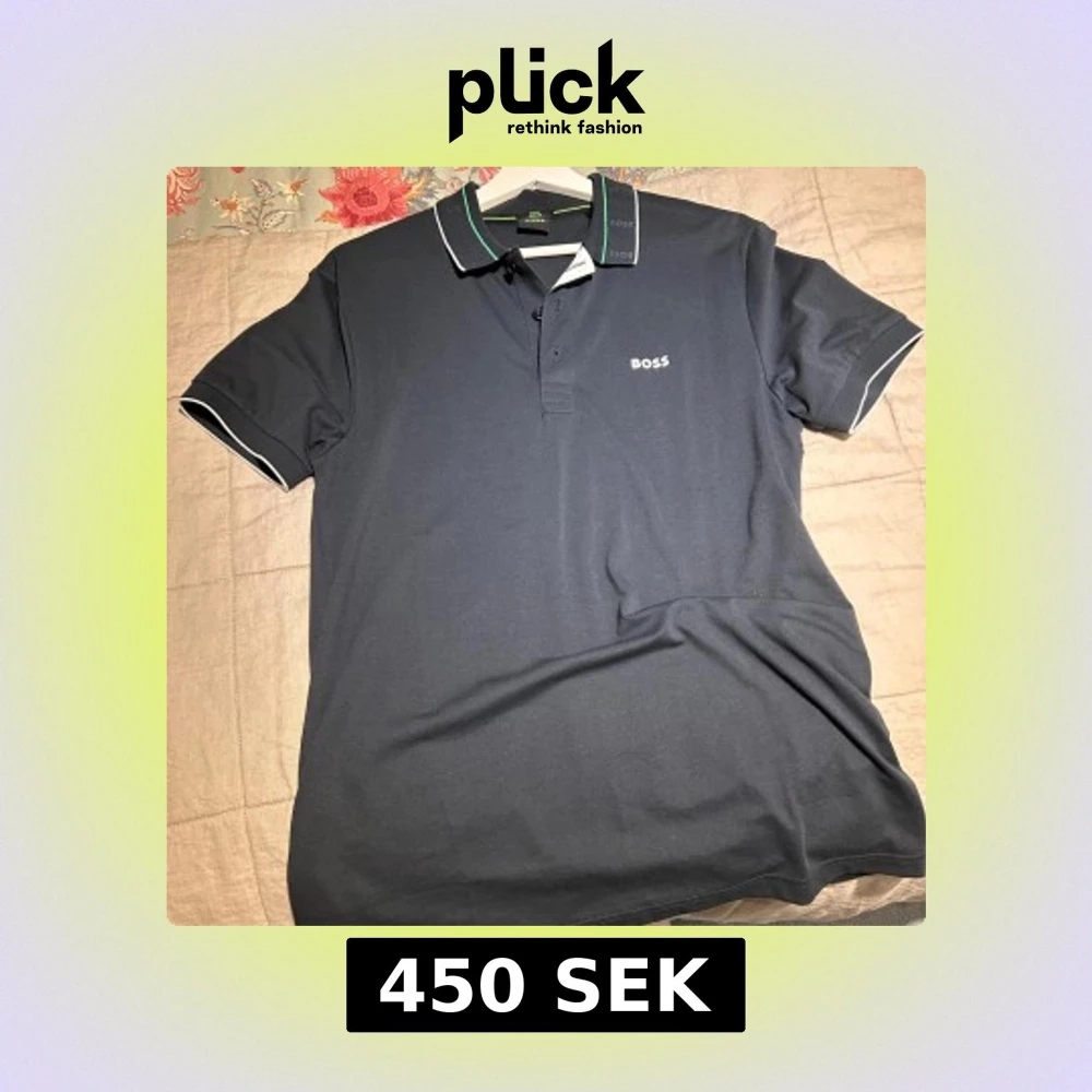 Snygg mörkblå pikétröja från BOSS med vit logga på bröstet. Kragen har gröna och vita detaljer samt BOSS-tryck. Tröjan har korta ärmar med vit kant och klassisk pikéknäppning. Perfekt för en clean och stilren look.