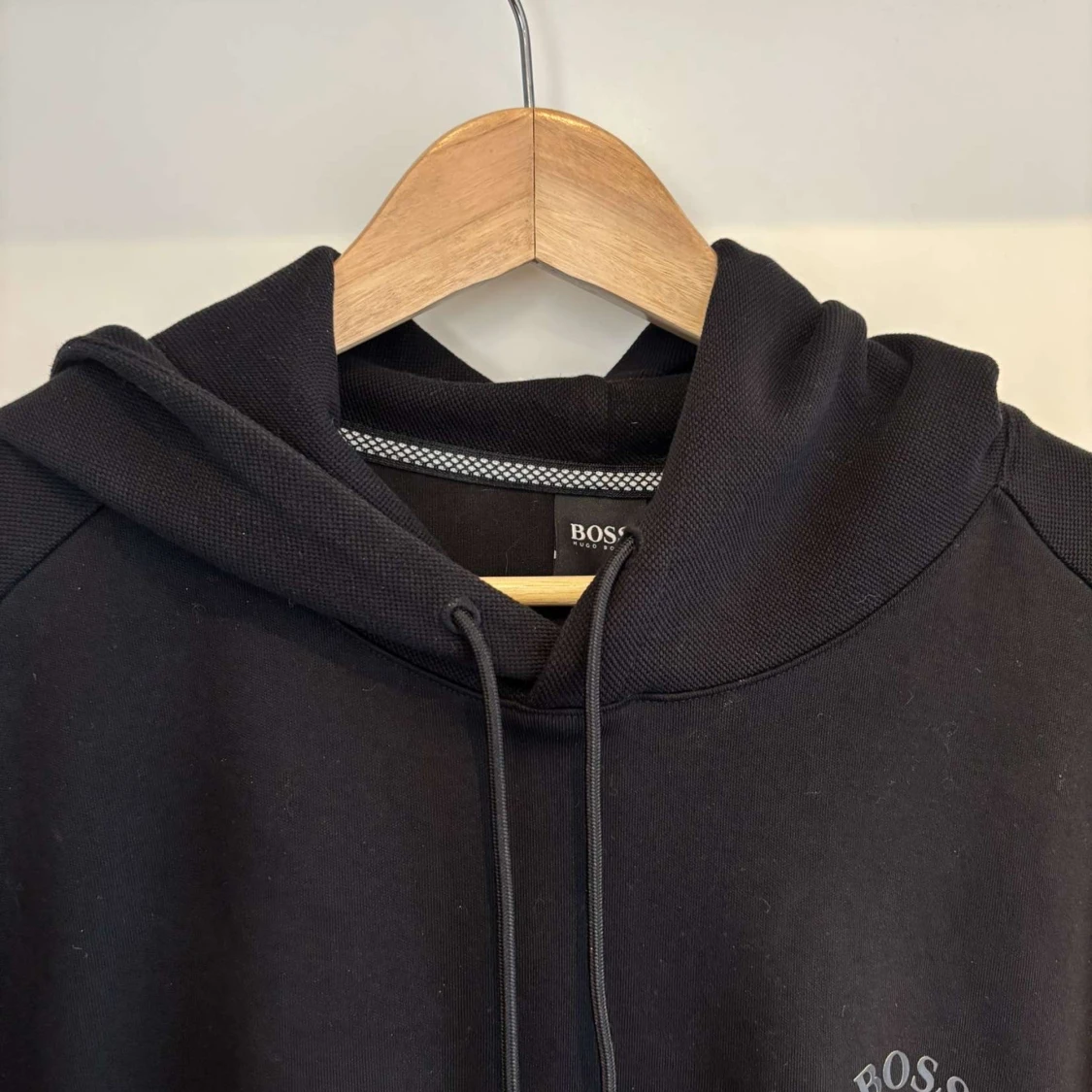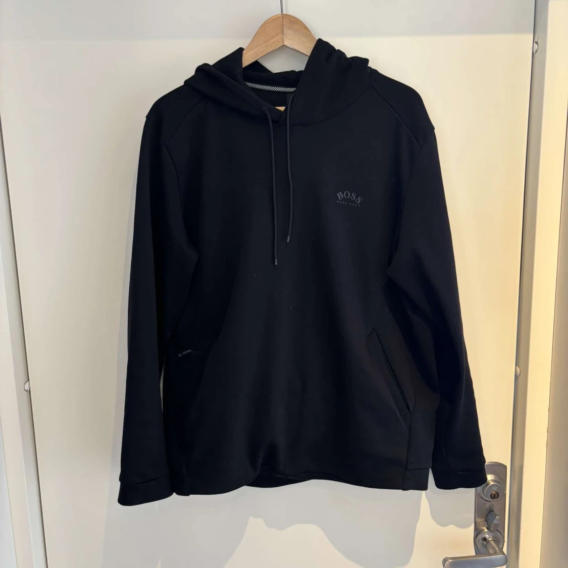 Säljer en stilren svart hoodie från Boss. Perfekt för en avslappnad look.