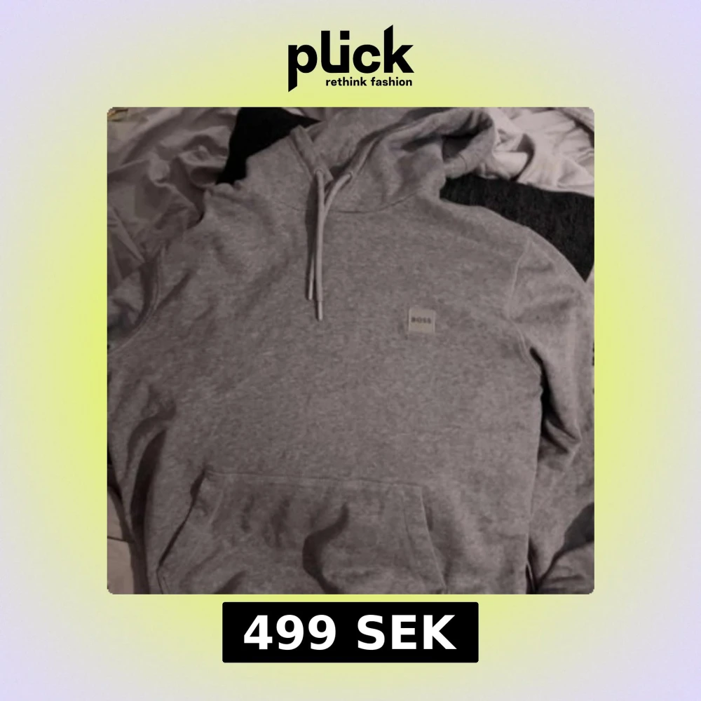 Säljer en stilren grå hoodie från BOSS med klassisk huva och snörning. Tröjan har en liten BOSS-logga på bröstet och en stor magficka framtill. Perfekt för dig som gillar enkel och clean streetstyle.