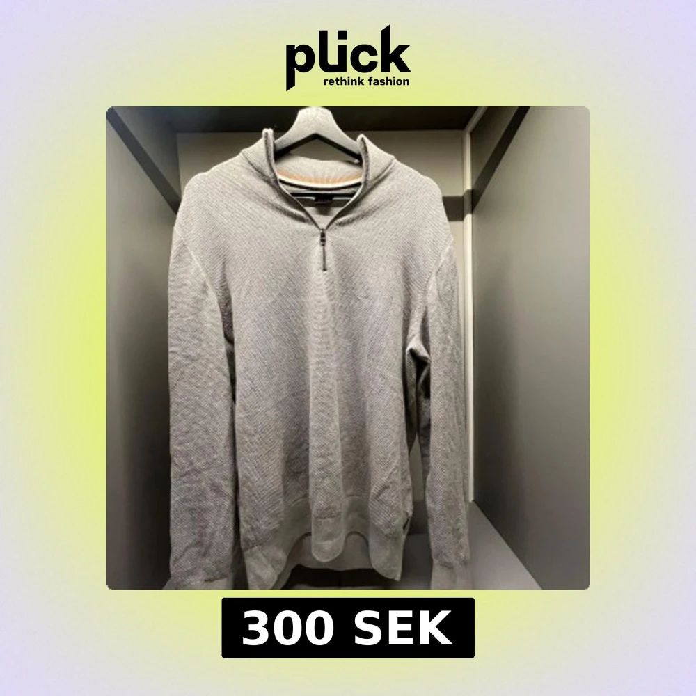 Snygg grå stickad tröja från BOSS med half zip och hög krage. Tröjan har lång ärm och en diskret struktur i materialet. Perfekt för dig som gillar stilrena och klassiska plagg med en modern touch.