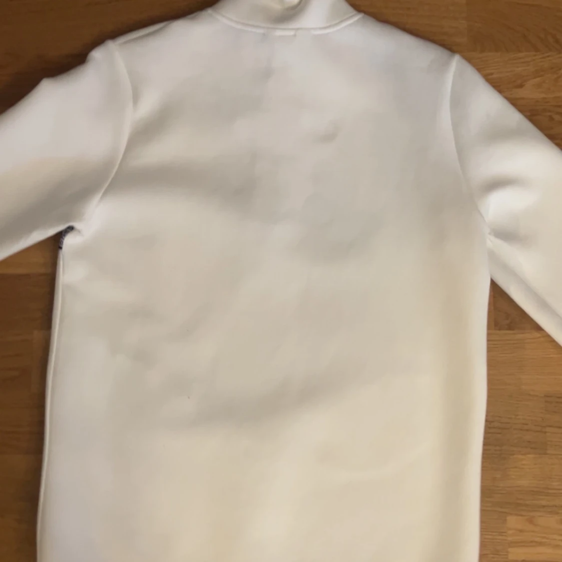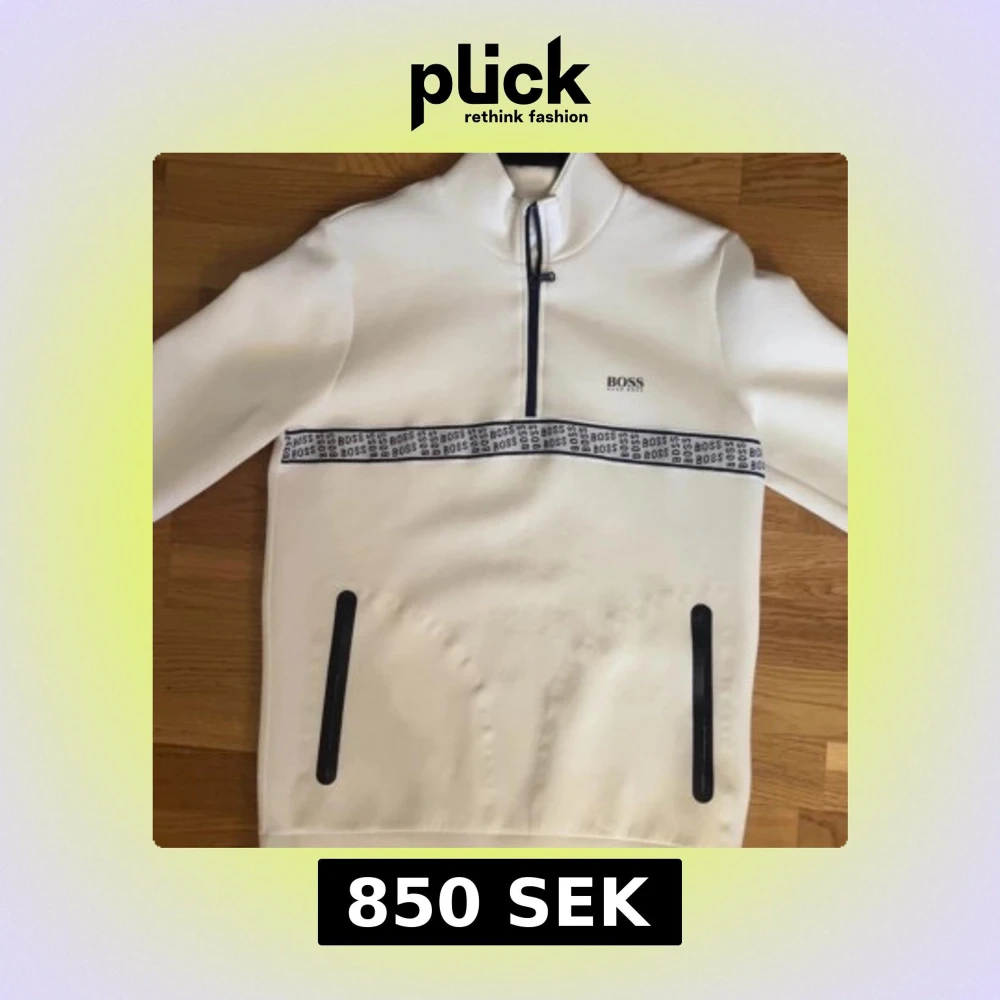 Snygg vit långärmad tröja från BOSS med svart half zip och logoband över bröstet. Tröjan har två svarta fickor framtill och hög krage. Perfekt för dig som gillar stilren och sportig design.
