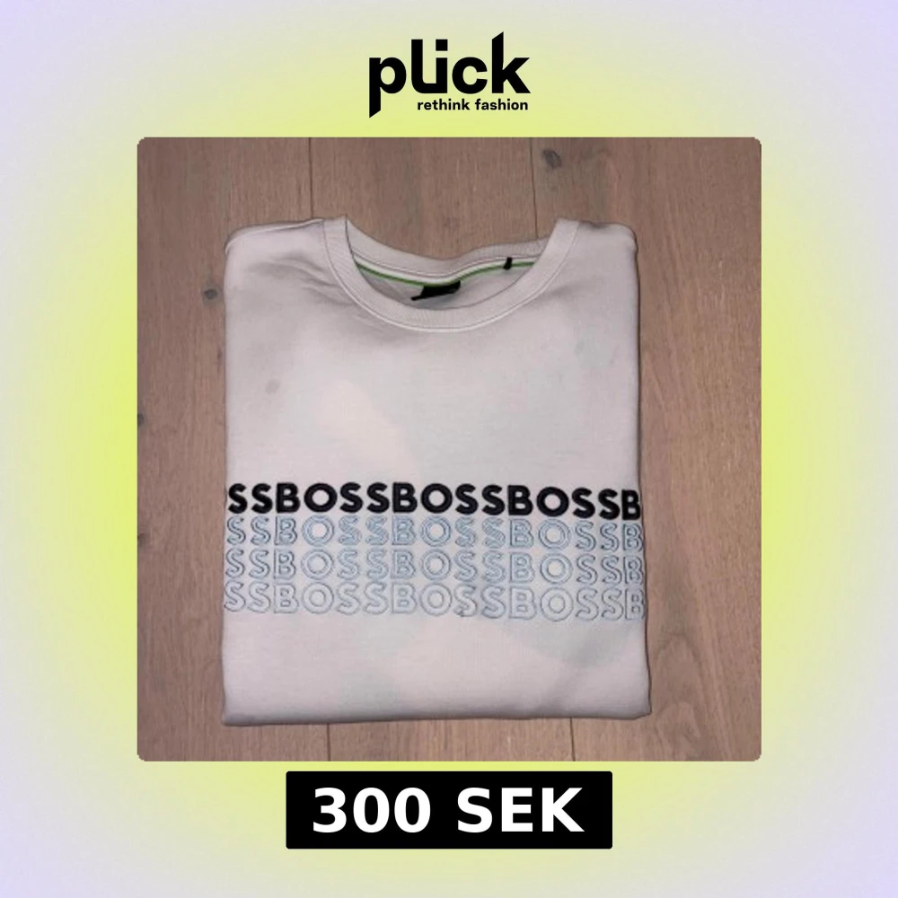 Vit sweatshirt från BOSS med svart och ljusblått BOSS-tryck över bröstet. Klassisk rund halsringning och långa ärmar. Skön passform och tillverkad i mjuk bomull, perfekt för en clean och stilren look.