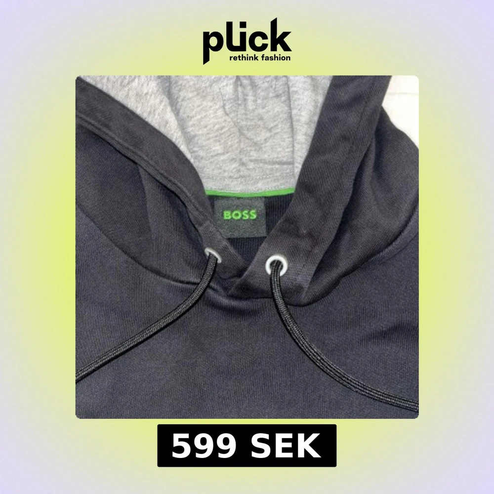 Svart hoodie från BOSS med stor broderad logga på bröstet. Tröjan har huva med snörning, känguruficka och mjukt grått innerfoder i luvan. Perfekt för en chill och stilren look.