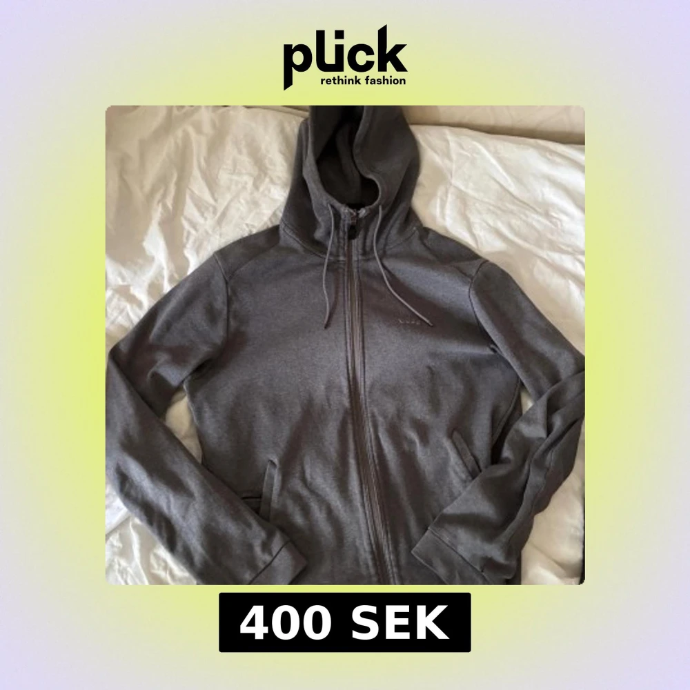 Snygg grå hoodie från BOSS med dragkedja hela vägen och huva med snörning. Tröjan har diskret BOSS-logga på bröstet och två fickor framtill. Perfekt för chill dagar eller när du vill ha en stilren look.