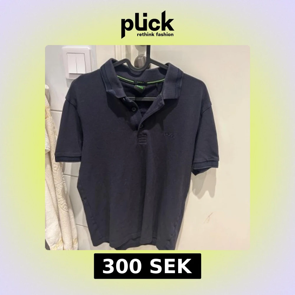 Klassisk svart pikétröja från BOSS med broderad logga på bröstet. Tröjan har krage, knappar framtill och korta ärmar,använd men inget slitage,storlek M