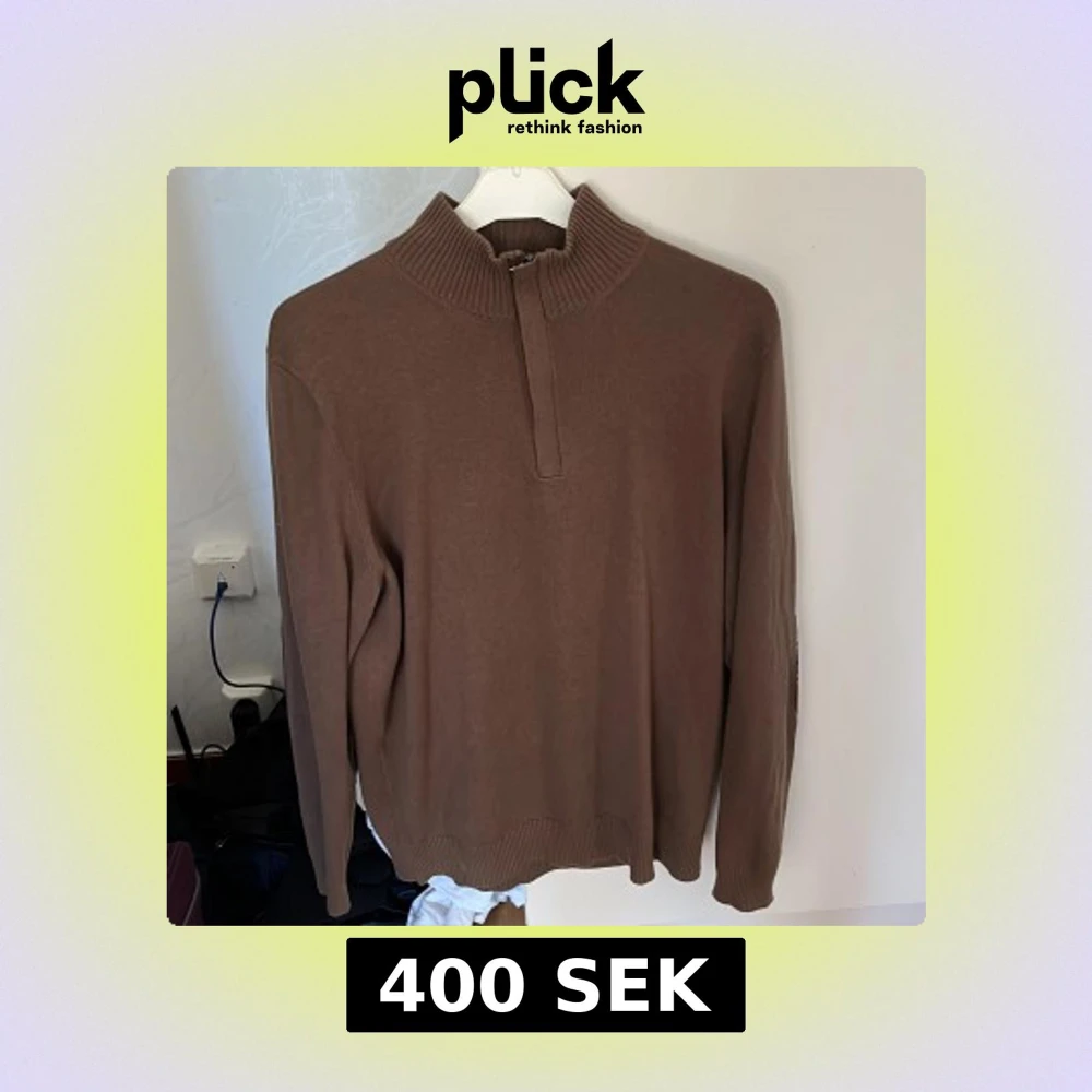 Säljer en stilren brun tröja från Boss med dragkedja och ribbad krage. Tröjan har långa ärmar och förstärkta armbågar i matchande färg. Perfekt för en avslappnad men elegant look.