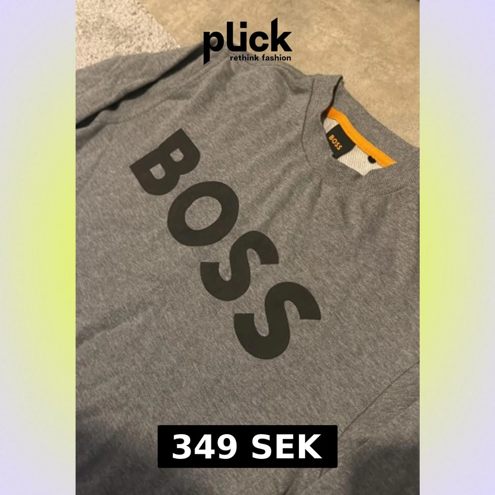 Snygg grå sweatshirt från BOSS med stort svart logotryck över bröstet. Tröjan har rund hals, långa ärmar och ribbade muddar vid ärmslut och nederkant. Perfekt för dig som gillar stilrena och klassiska plagg med tydlig branding.