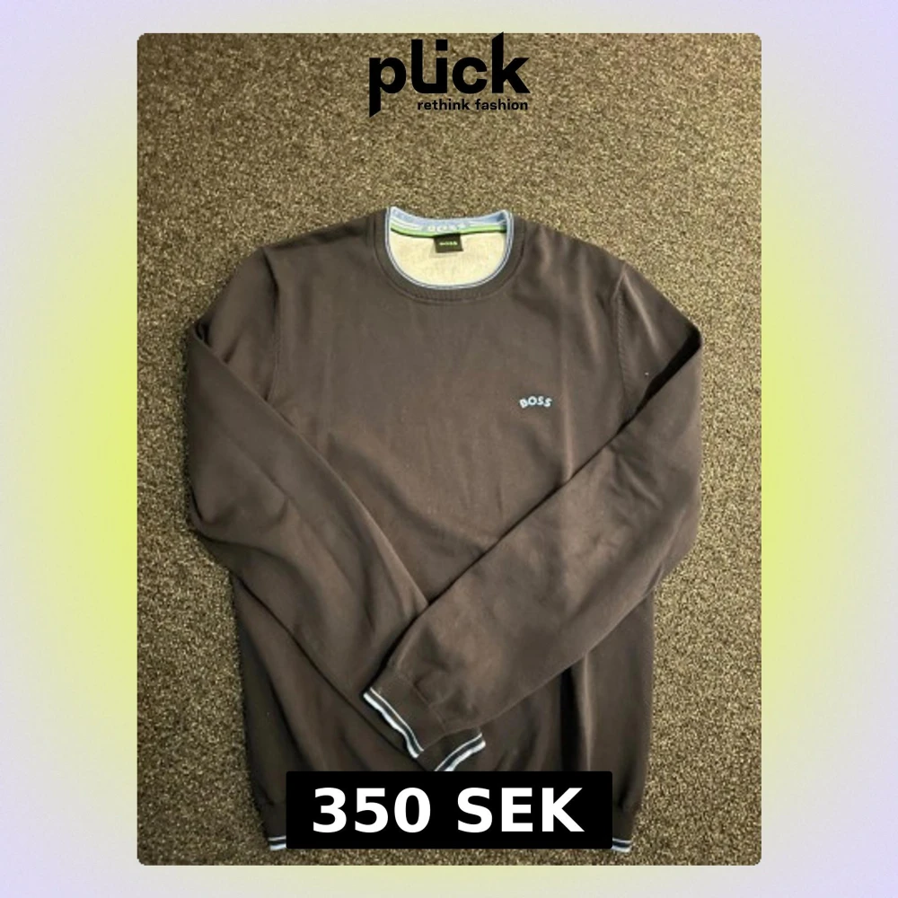 Snygg brun tröja från BOSS med rund halsringning och diskret BOSS-logga på bröstet. Tröjan har långa ärmar och ribbade muddar med vita och blå detaljer vid ärmslut och nederkant. Perfekt för en stilren och avslappnad look.