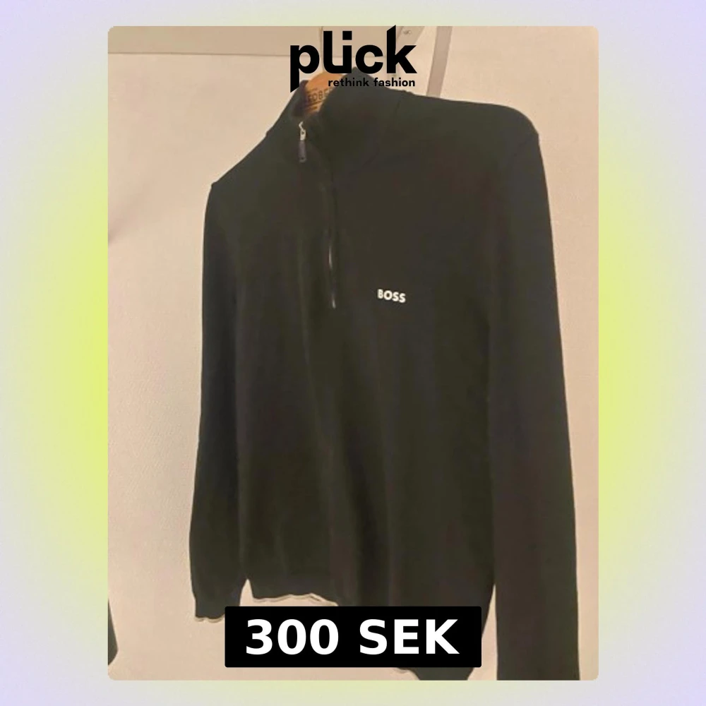 Snygg svart långärmad tröja från BOSS med halvzip och diskret logga på bröstet. Tröjan har hög krage och är tillverkad i ett mjukt material som passar perfekt till en stilren look.