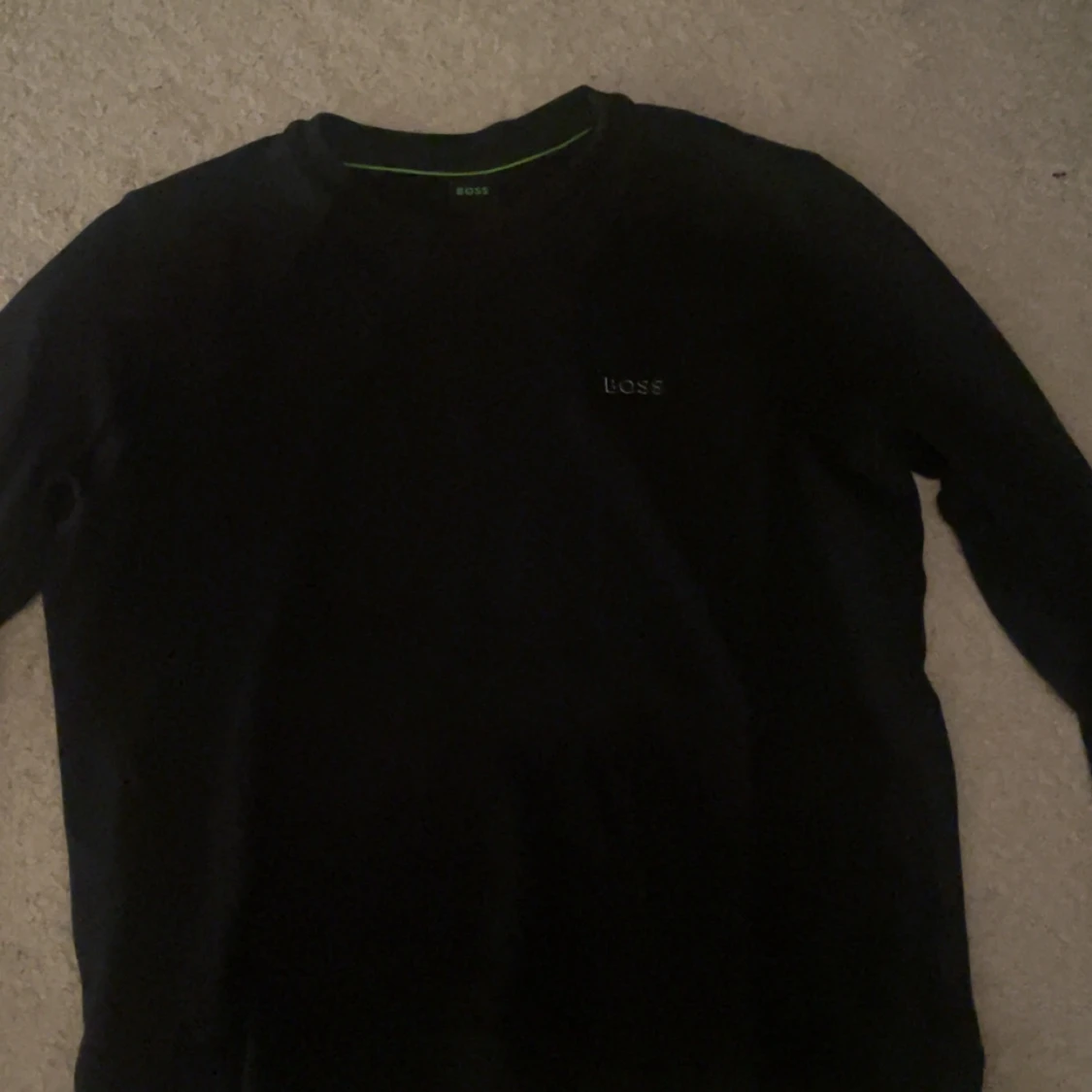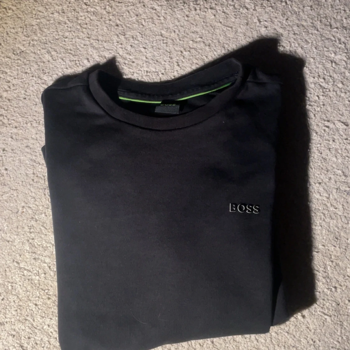 Svart långärmad tröja från BOSS med diskret logga broderad på bröstet. Klassisk rund halsringning och stilren design. Perfekt för dig som gillar en clean look med premiumkänsla. Materialet känns mjukt och bekvämt mot huden.
