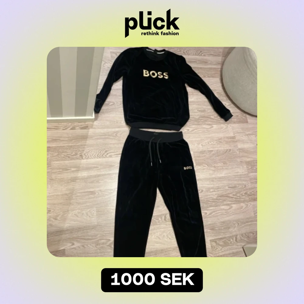 Boss, svart mjukis set i sammet med guldiga detaljer. Storlek S. Som nytt.