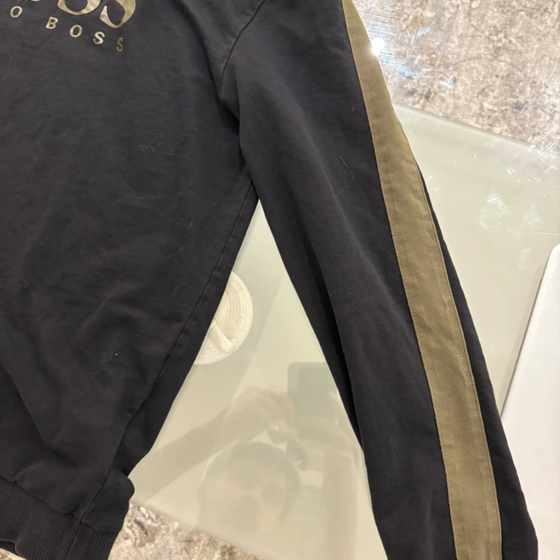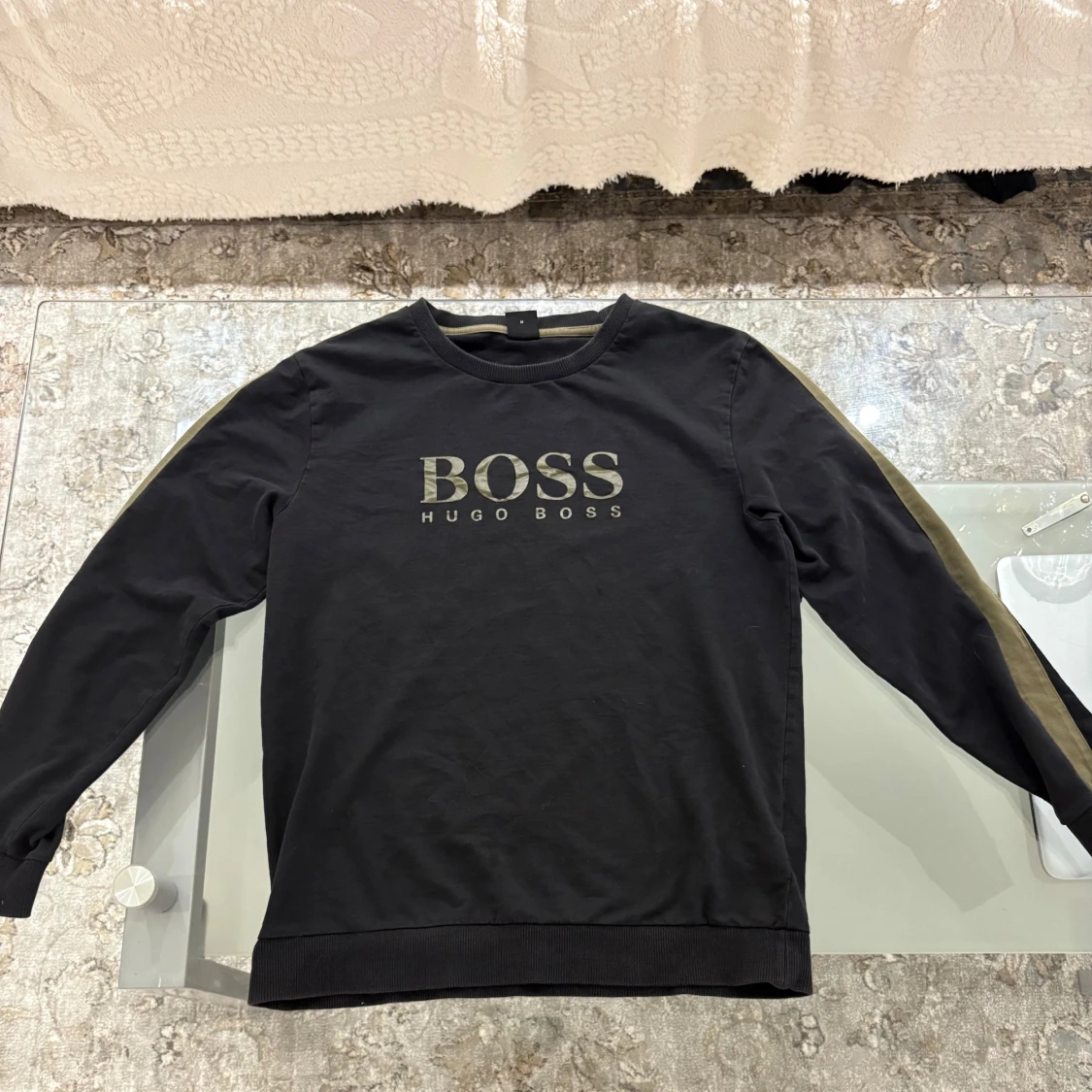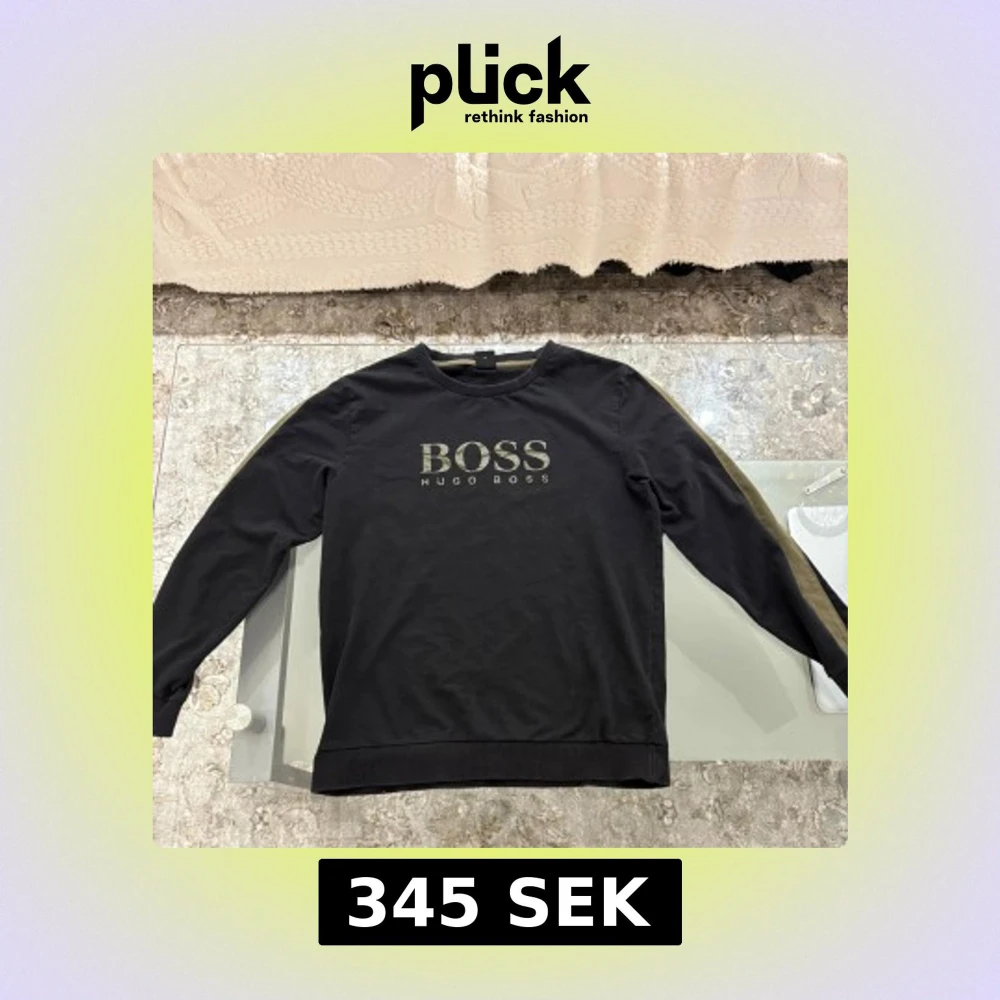 Beskrivning: Säljer en Hugo Boss-tröja i storlek M. Tröjan är i bra skick (6/10) med endast mindre tecken på användning. Det enda är att en del av texten på B har slitits bort mycket lite, men det syns knappt. Färgen har blivit lite värre.