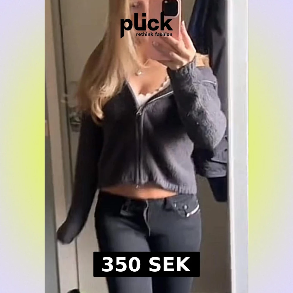 Mörkgrå stickad hoodie från Weekday med boxig passform och dragkedja framtill. Tröjan har huva, långa ärmar och är croppad i modellen. Perfekt för lager-på-lager och chill vibes. Köpte ny pris 600kr därav priset och materialet är väldigt fint!❤️
