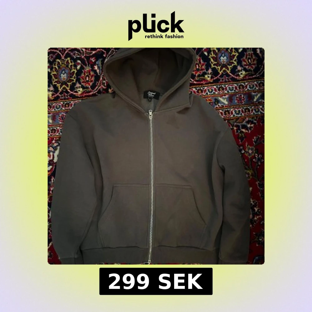 Säljer en mörkgrå hoodie från Brand of Roses i storlek L. Tröjan har dragkedja framtill, huva och två stora fickor. Perfekt för en avslappnad stil och enkel att matcha med det mesta. Boxy fit.