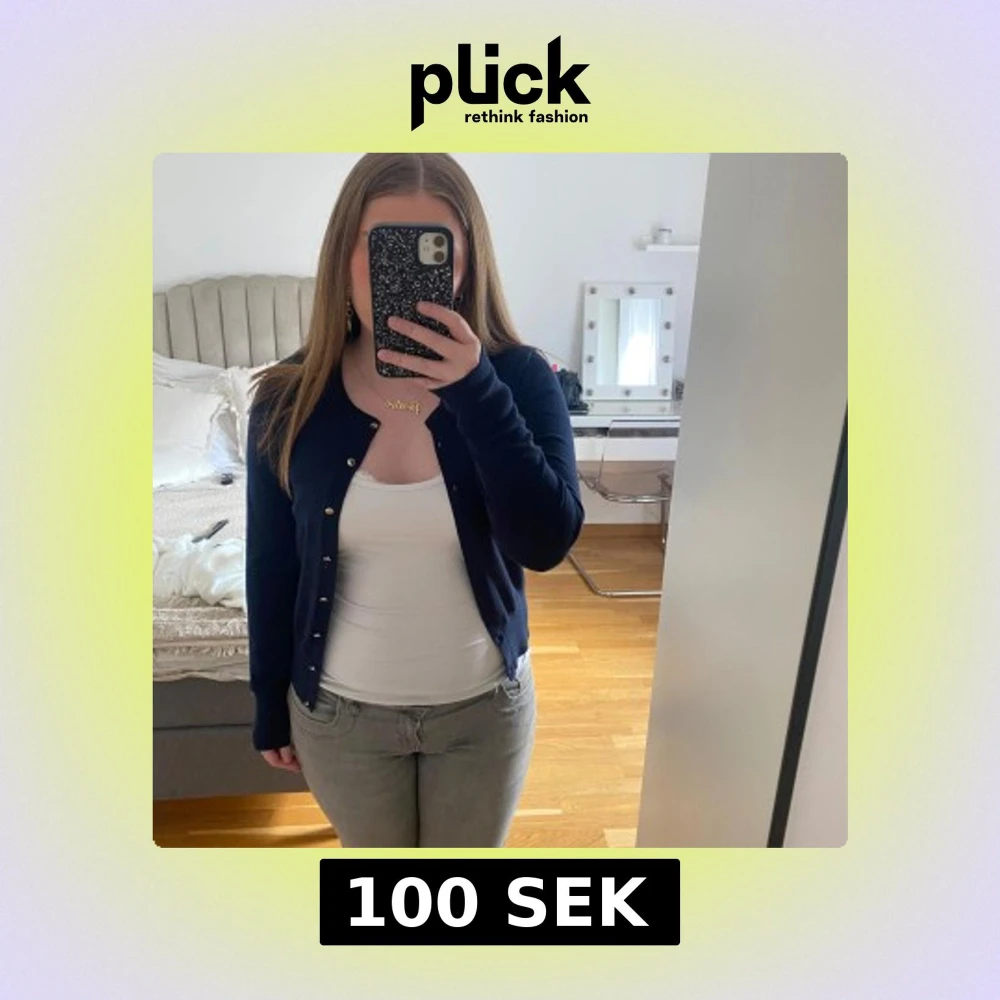 Säljer en stilren mörkblå kofta från Holly & White. Koftan har långa ärmar och knappar framtill. Passar till många olika outfits.