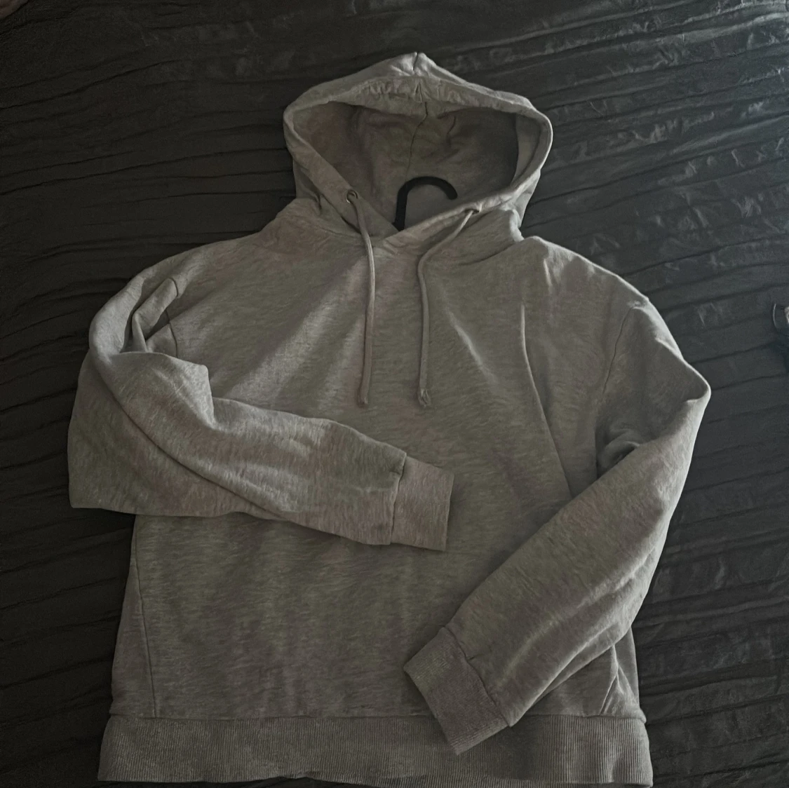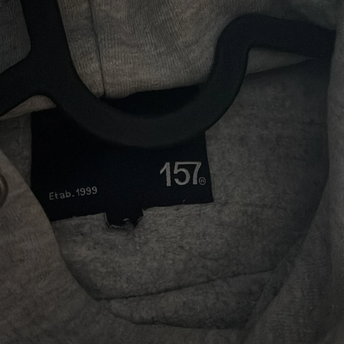 Säljer en enkel och stilren grå hoodie från 157. Tröjan har huva med dragsko och långa ärmar med ribbade muddar. Perfekt för en avslappnad look.