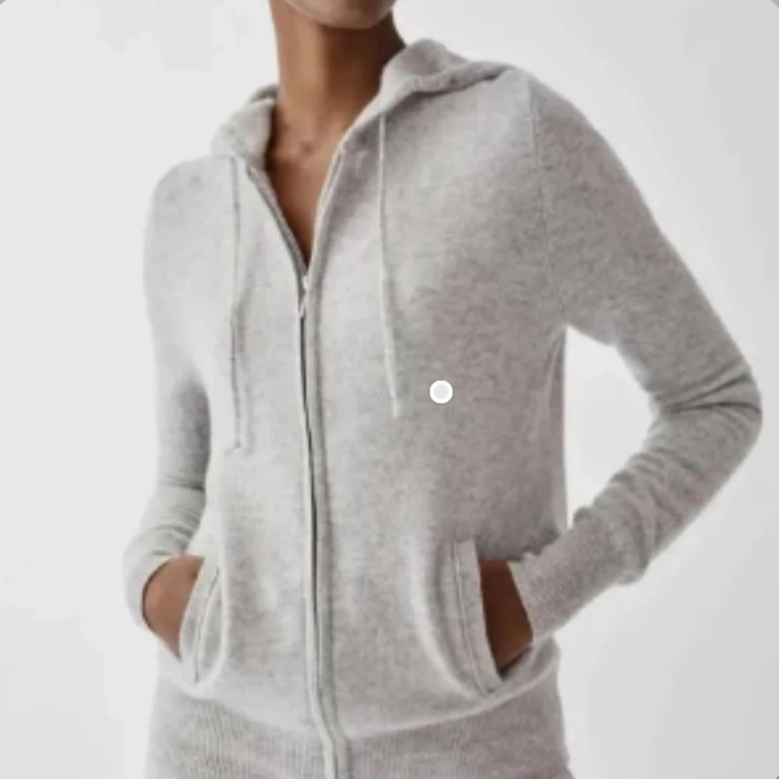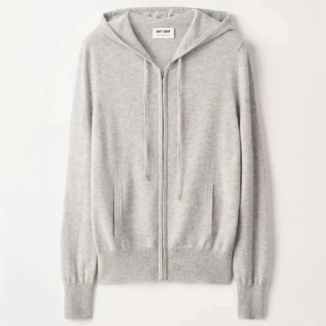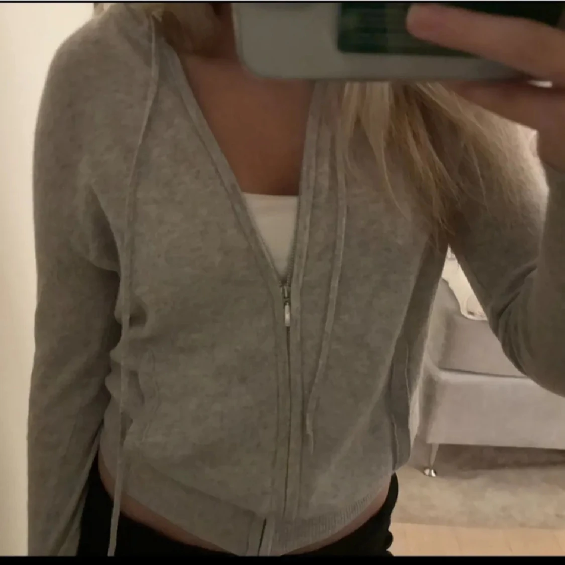 Populär zip up hoodie I cashmere från soft goat i storlek S/M , säljer då den inte kommer till någon användning ☺️ Tröjan har en defekt att tyget på zip upen har gått av lite , skriv för bild !!