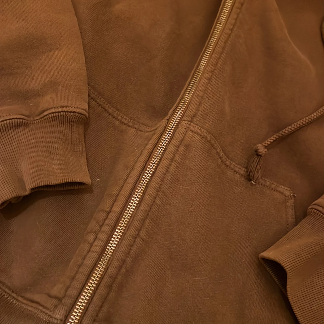 En brun zipup tröja från Brandy Melville. Den är fortfarande i gott skick och känns bra på. Storleken är onesize, men passar bäst på XS-M.