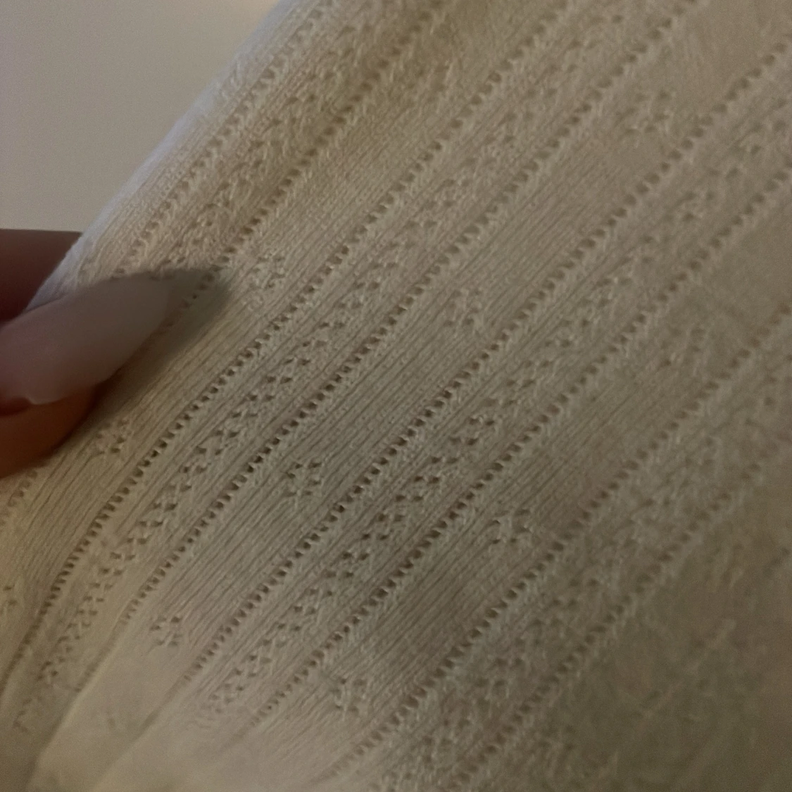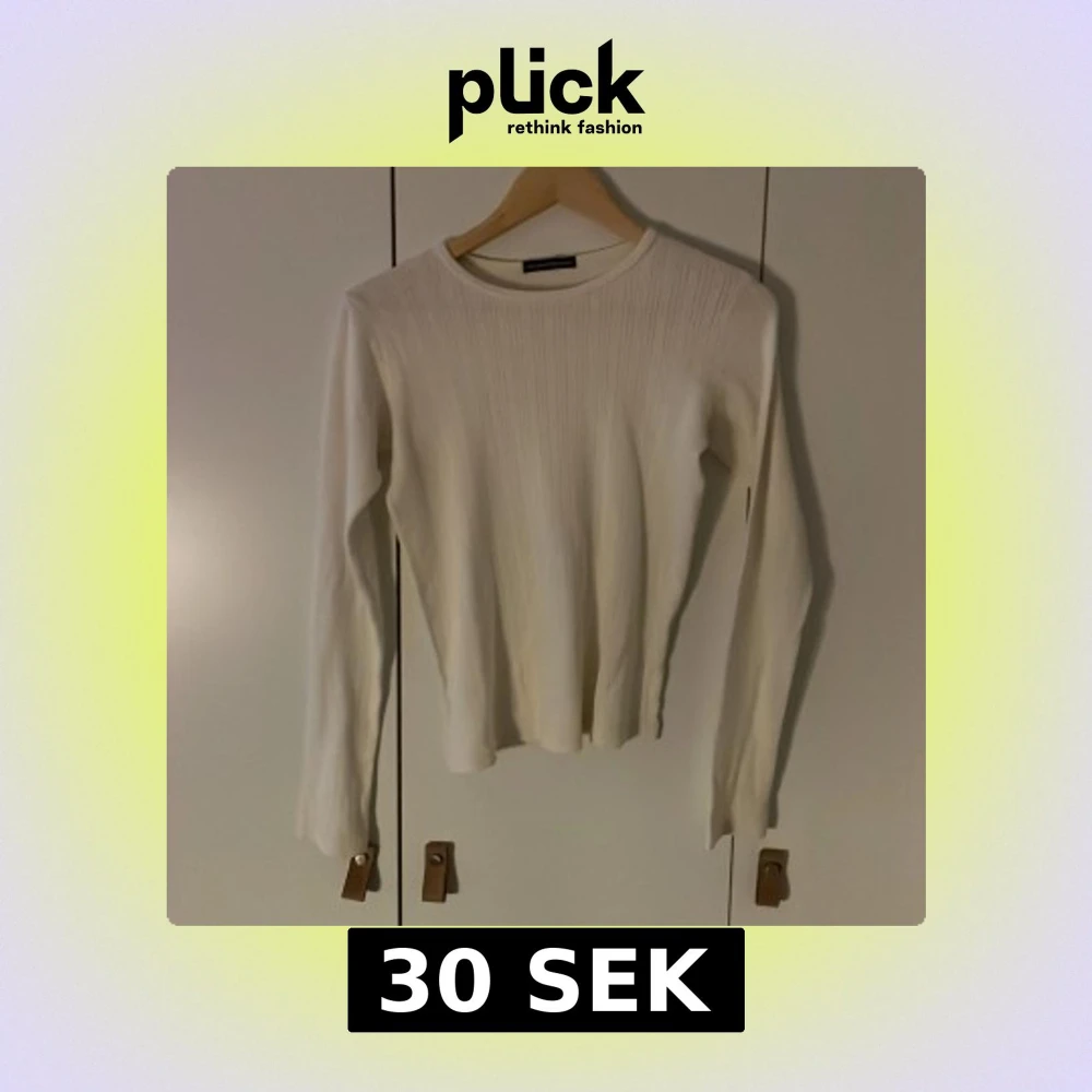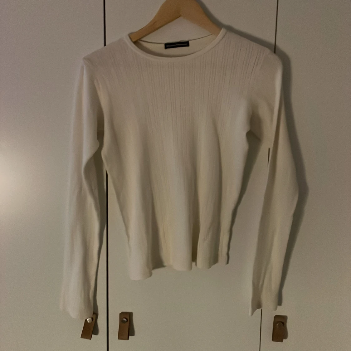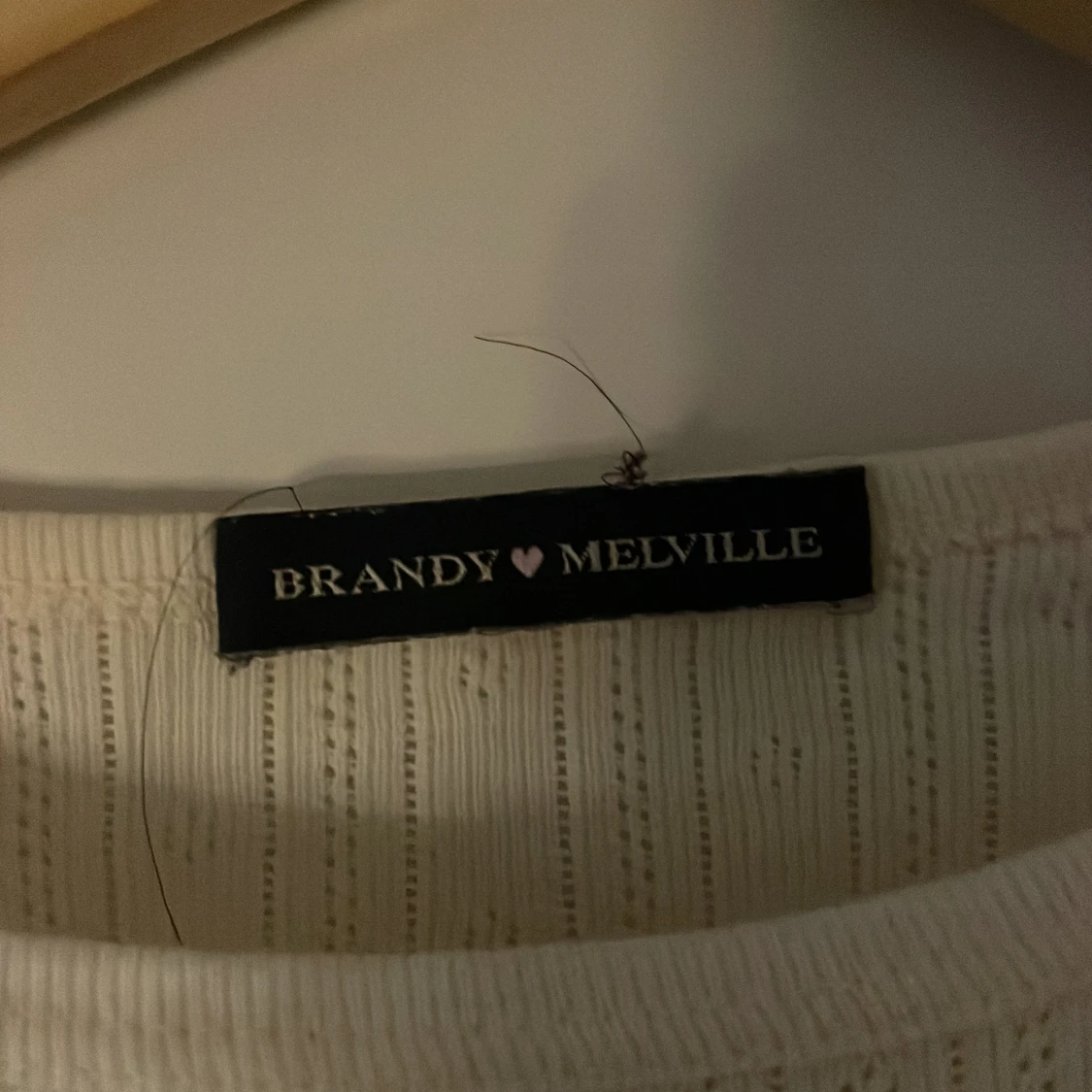 Säljer en vit långärmad tröja från Brandy Melville med ribbad struktur och diskreta små hålmönster. Tröjan har rund hals och är gjord i mjuk bomull, perfekt för dig som gillar clean och enkel stil. Passar dig som vill ha en basic men ändå söt topp.