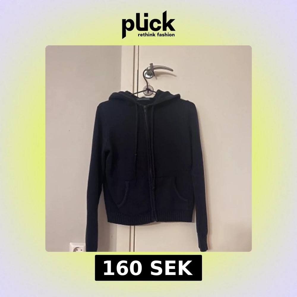 mörkblå stickad hoodie från Brandy Melville med dragkedja framtill och två fickor. Tröjan har huva, ribbade muddar och lång ärm. Perfekt för dig som gillar en chill och enkel stil.