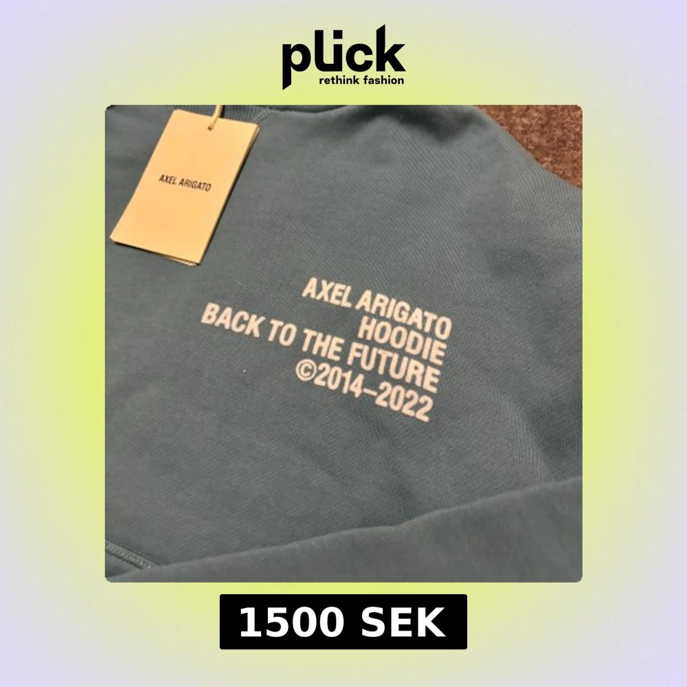 Såå snygg grön hoodie från Axel Arigato med texten 'Back to the Future' tryckt på bröstet. Den har en klassisk känguruficka och justerbar huva med dragsko. Perfekt för en avslappnad stil. Aldrig använd på grund av att jag inte fått något tillfälle till det. XS men passar S också då jag skulle säga att den är stor i storleken.