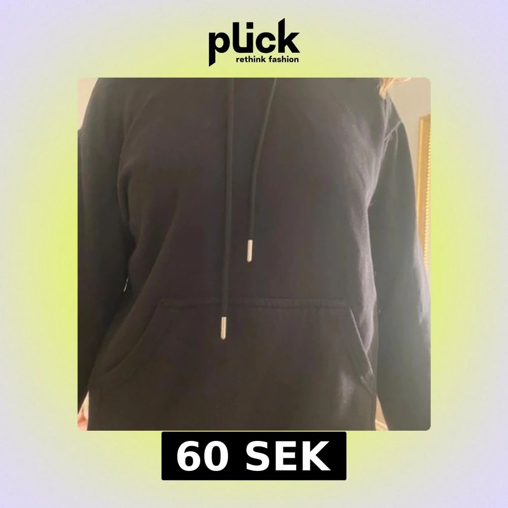 Säljer en klassisk svart hoodie med känguruficka och justerbar dragsko i huvan. Perfekt för en avslappnad stil.