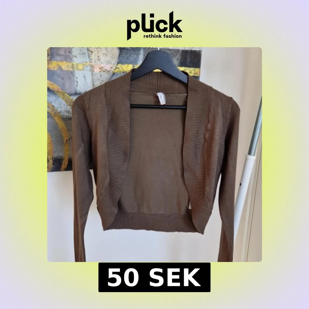 Säljer en stilren brun bolerotopp med långa ärmar. Toppen har en ribbad kant och är perfekt för lager-på-lager-stil. Passar bra till både vardag och speciella tillfällen.