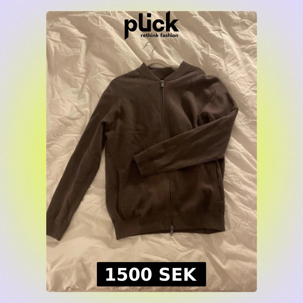 Sprillansny snygg brun cardigan jacka från Massimo Dutti med stilren design och ribbade muddar. Jackan har dragkedja framtill, två fickor och är långärmad. Perfekt för dig som gillar enkel och clean look. Materialet är mjukt och känns skönt mot huden.
