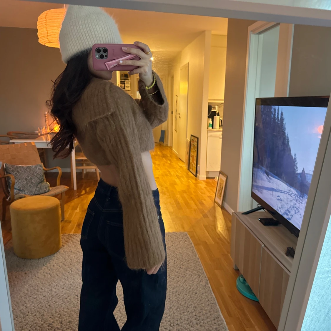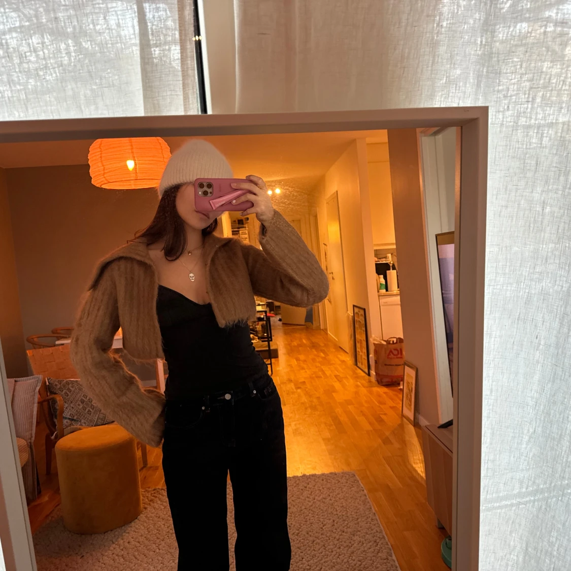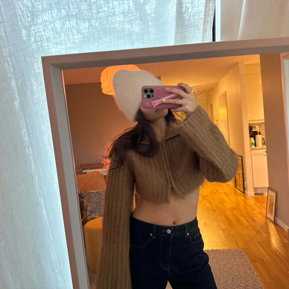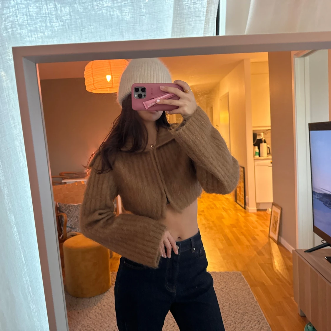 så snygg brun croppad kofta med långa ärmar. från other stories, stl s! snygg som kofta och bolero😍😍älskar kragen🙋🏽♀️