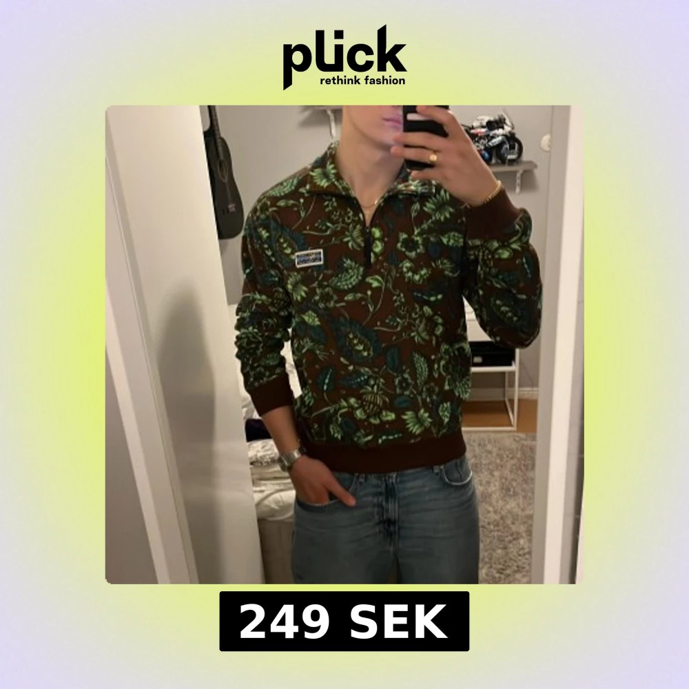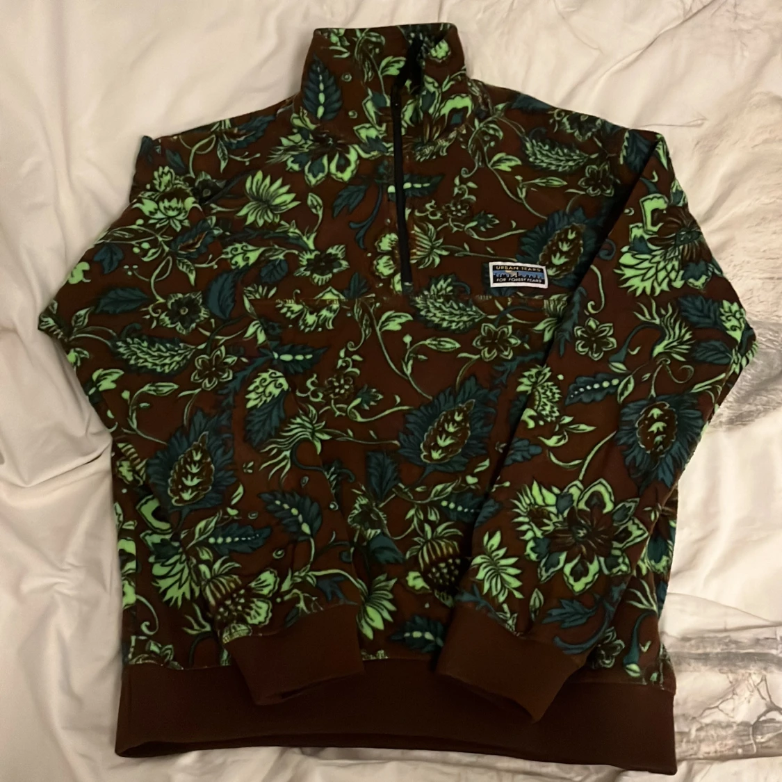 Brun fleece-tröja med blommigt mönster från Junkyard