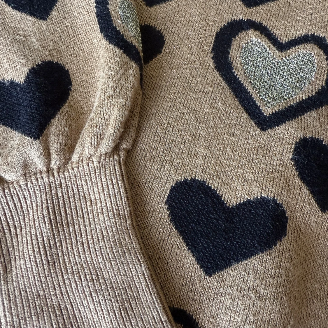 Brun guldig stickad tröja med svarta och glittriga hjärtan från Next