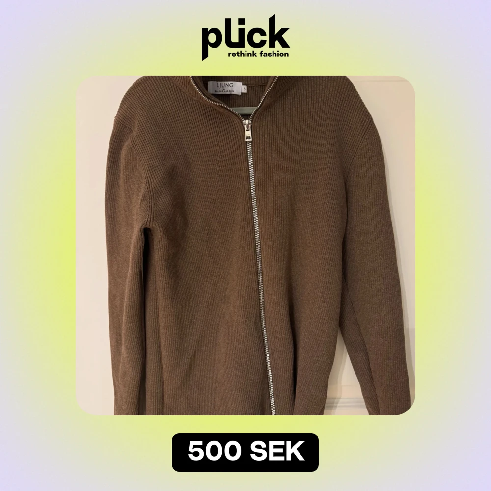 Brun Ribbstickad Helzip från Ljung by Marcus Larsson i Storlek S. Använd 2 gånger. Nypris: 899