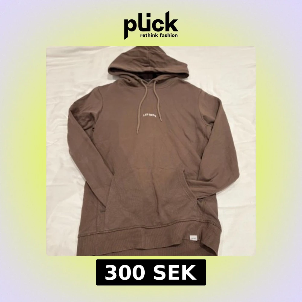 Säljer en stilren brun hoodie från Les Deux med broderad logga på bröstet. Tröjan har huva med snörning, känguruficka och långa ärmar. Tillverkad i mjuk bomull, perfekt för chill dagar eller när du vill vara bekväm men ändå snygg.