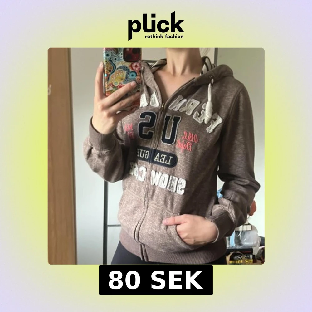 Säljer en brunmelerad hoodie från Tindra med stora broderade bokstäver och tryck på framsidan. Tröjan har huva med snörning, dragkedja och ribbade muddar. Perfekt för en chill och sportig look. Använd fåtal gånger! Storlek S- 36/38🤎